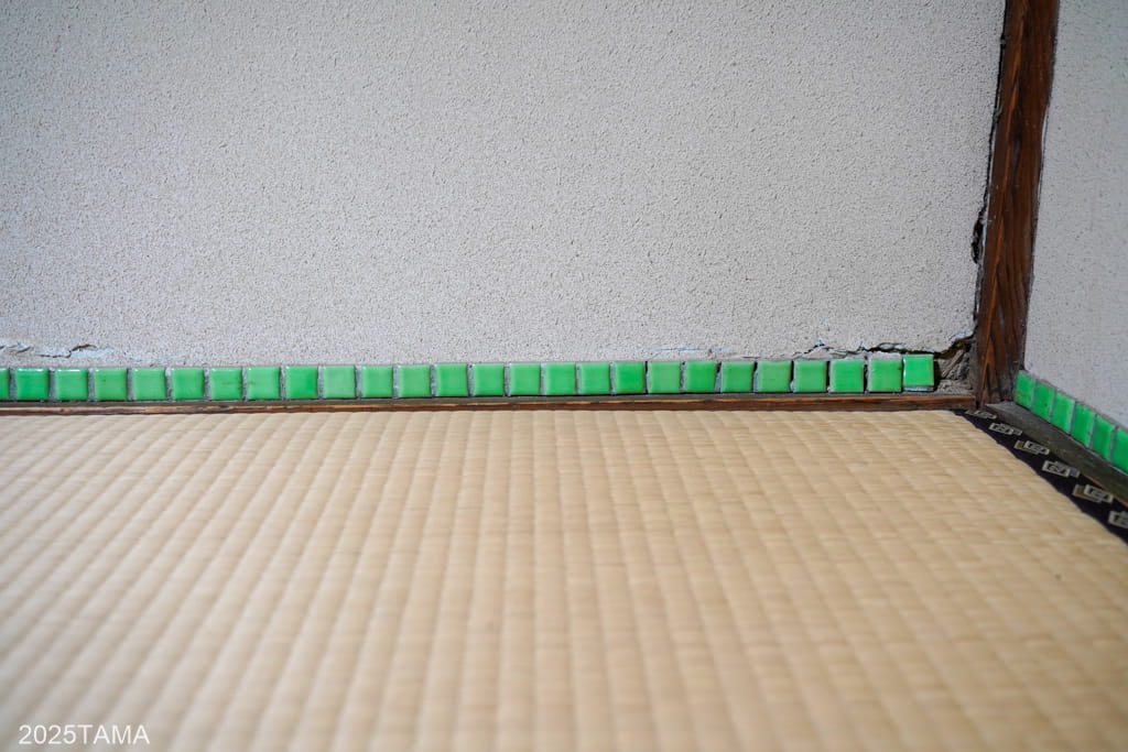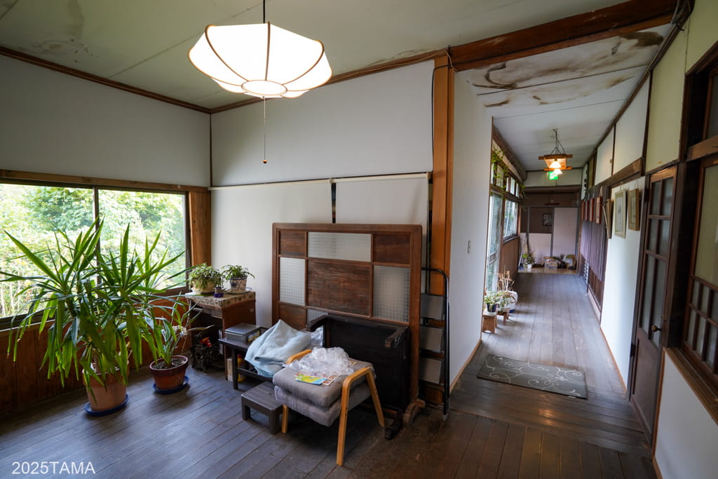 廊下の突き当たりでは、壁や天井の一部が欠けていました。2階と比較すると1階の方が荷重がかかるぶん負荷が大きいようです。