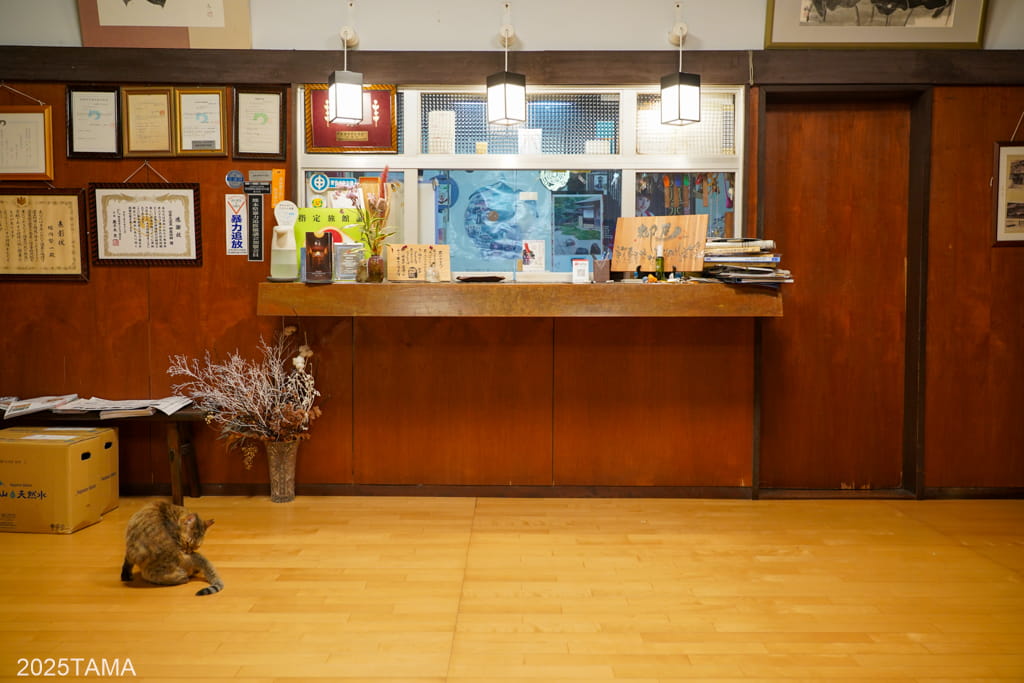 宿泊している宿に猫がいることの幸福さは相当なもので、温泉に行く・食事をする・寝るといった宿における一般的な行動に加えて「猫に会いに行く」という行動が自然とプラスされる。猫に会いたいがために館内を歩くことになり、運よく会えたなら癒やしの時間を過ごすことができます。一泊を過ごす旅館においてこれほど至福な体験はないだろう。