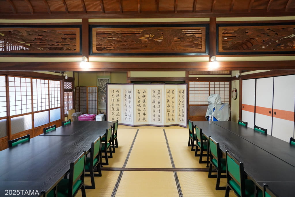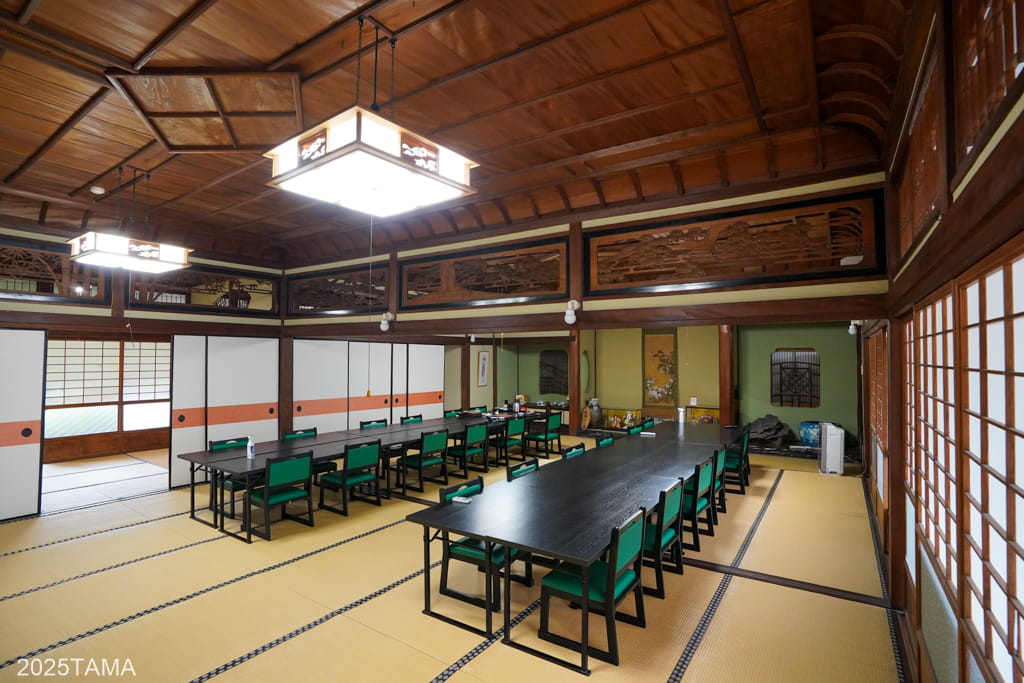 こちらがその大広間の様子。幅.奥行きともに十分な広さがあり、向かって左側には大きな床の間も設けられています。