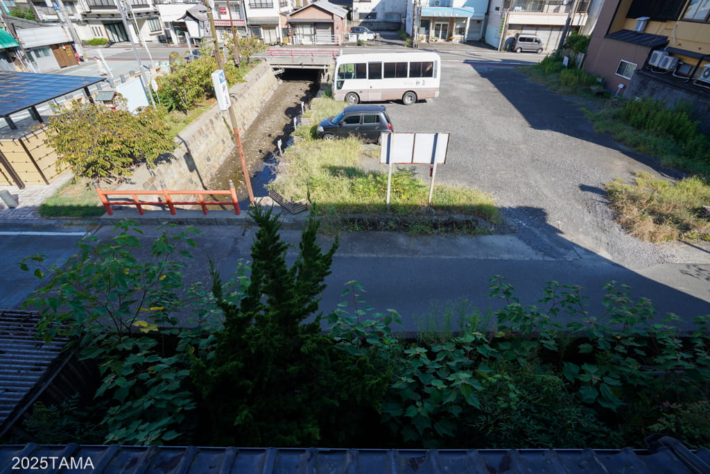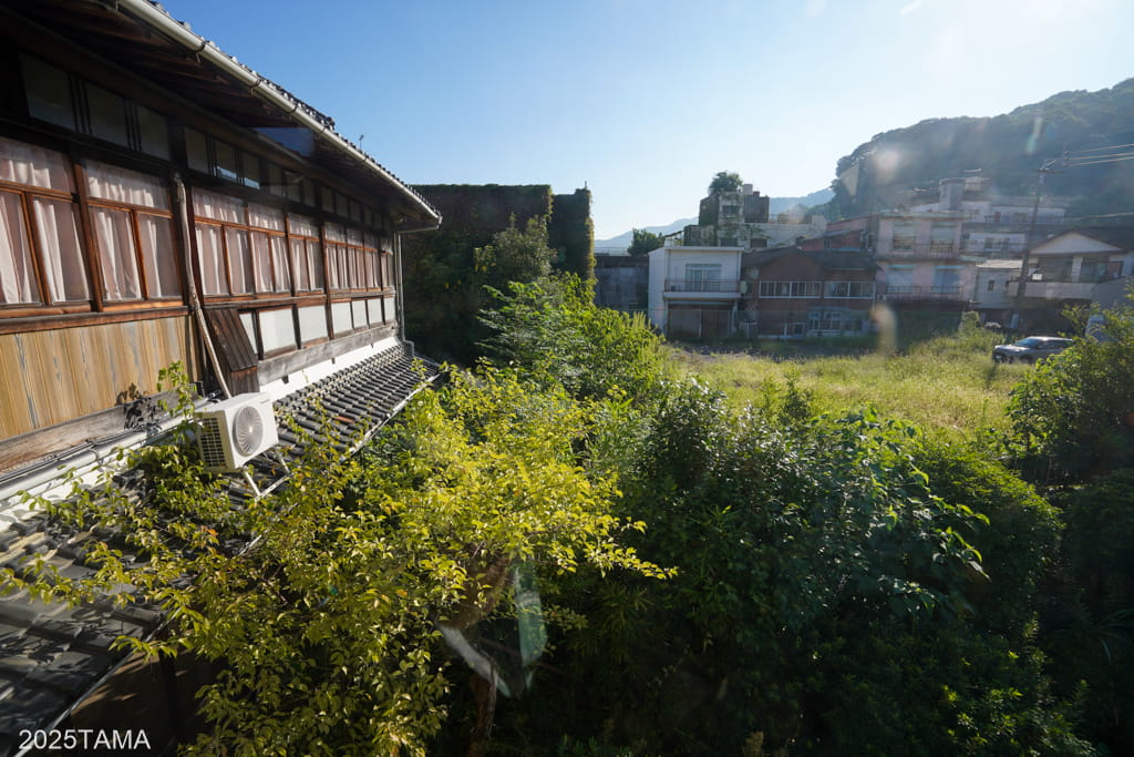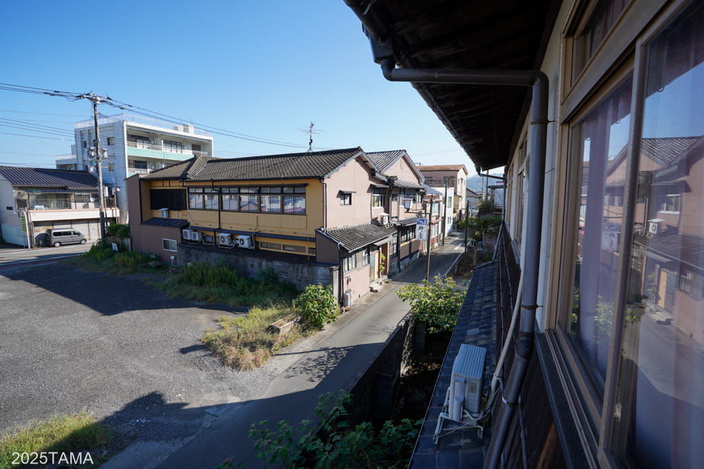 広縁にからは日奈久温泉の入口を一望することができます。国道の向こう側には今でこそ建物が建っているものの、おそらく昔は海が直接見えたんだろうなと思います。