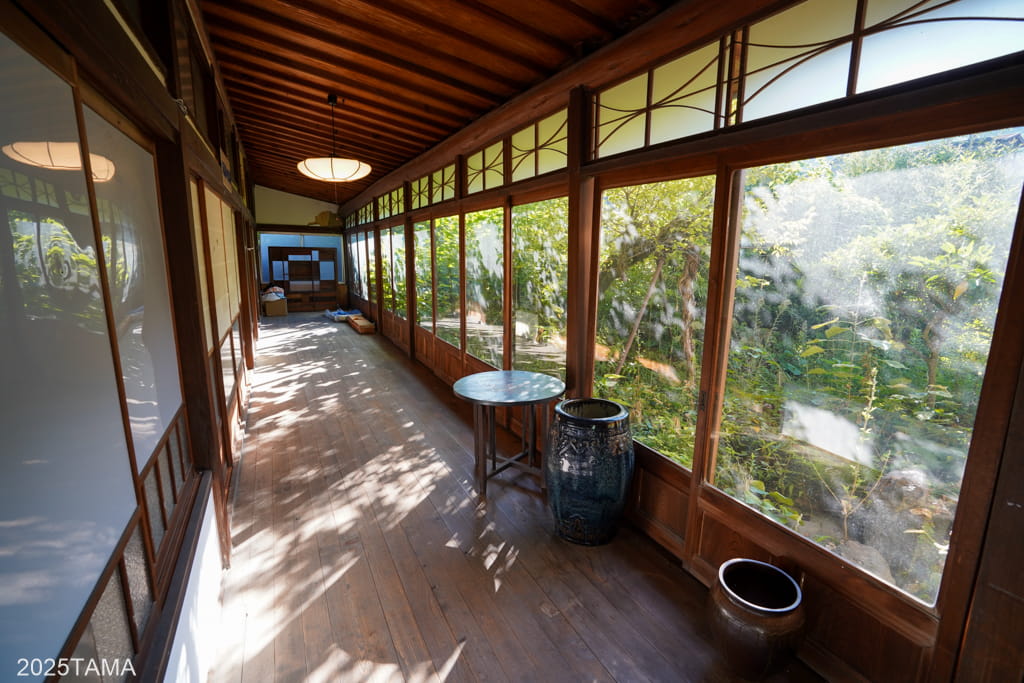 自分は周囲から何も聞こえてこない建物の中、夏の昼下がりにここに佇んでいる。いま自分が見ている風景、気温の高さ、足裏や手を通じて身体に伝わってくる木造建築の造り。木造旅館で過ごすことを五感で味わえているような気がして、良い気分になれました。