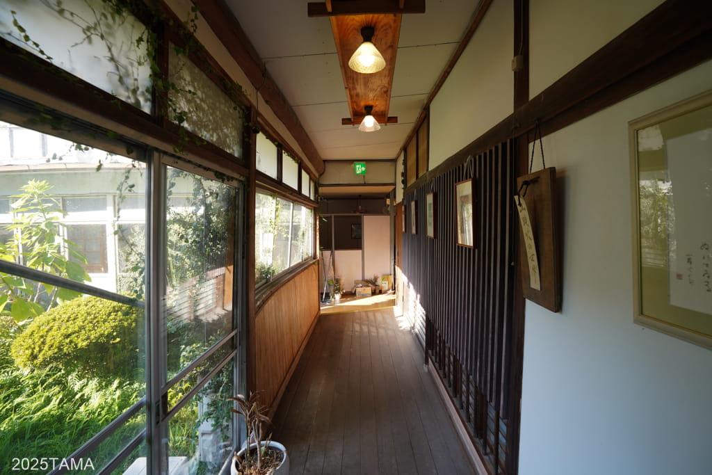廊下の意匠や最初から踏込がある造り、そして後述するように床の間の豪華さや室内の便利さを考えると、古いエリアの棟は昭和の時代に増築されたようです。商店やバーがある別館の増築と同時期なのだろうか。