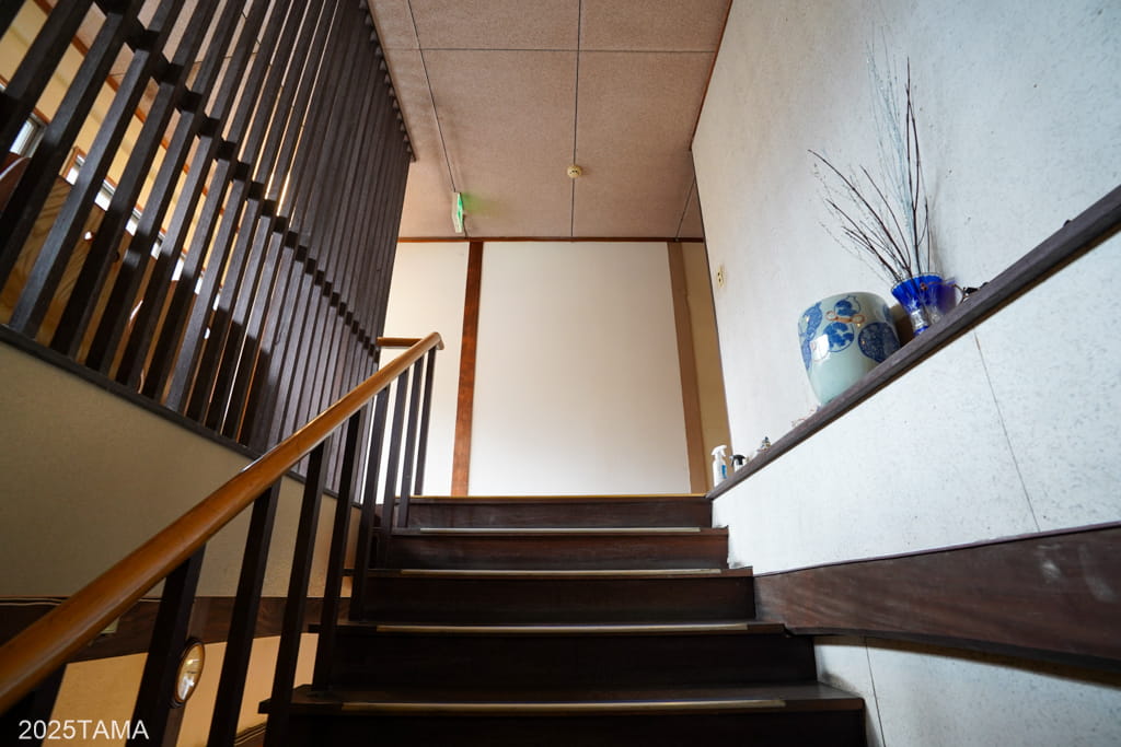 2階へ上がる階段は本館右端と中央の2箇所あって、少なくとも玄関を入って最初に使用するのは玄関から見える前者の階段。自分も動線に従ってここを通ったものの、チェックイン時とチェックアウト時の2回以外は中央の階段を使っていました。