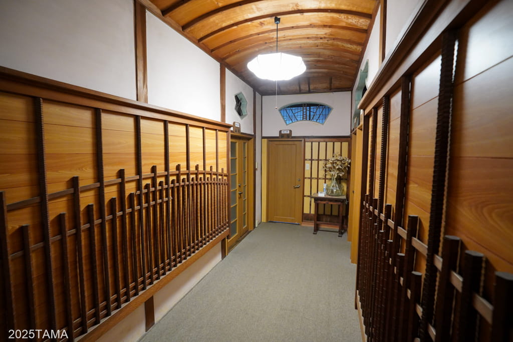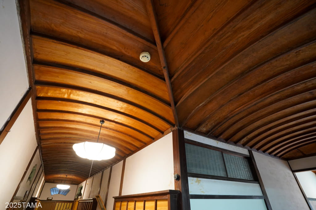 湾曲している天井はどこか和風建築らしくない様相です。まるでヨーロッパの聖堂のようだ。