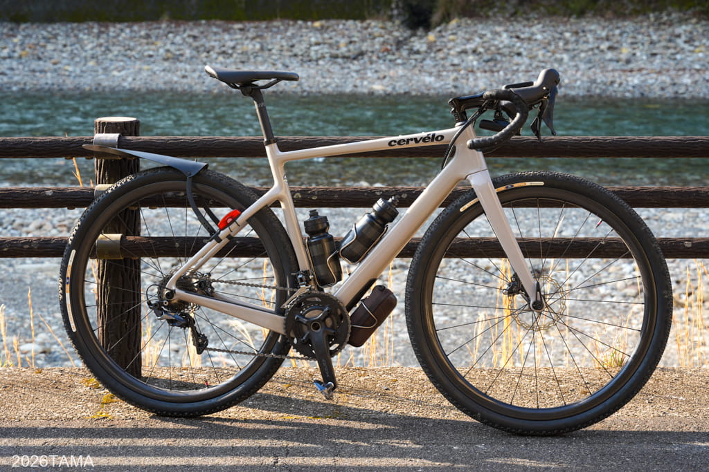 今回の装備はこんな感じで、グラベルキングX1の45cにダブルボトル体制で臨みました。少なくとも往路では補給できるポイントが皆無であり、水分は多めのほうがいいと判断。