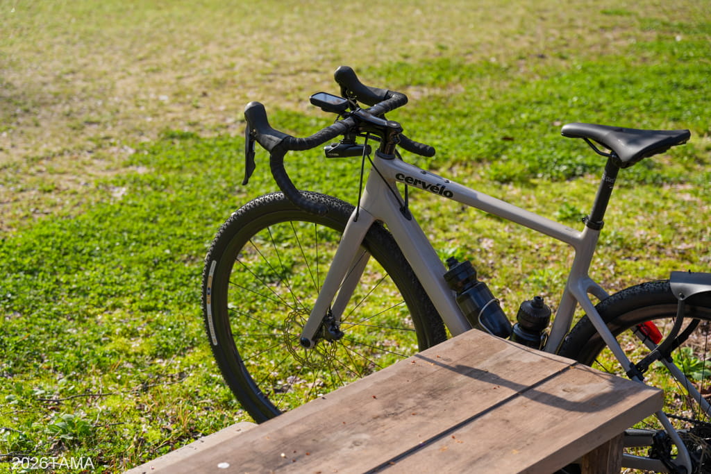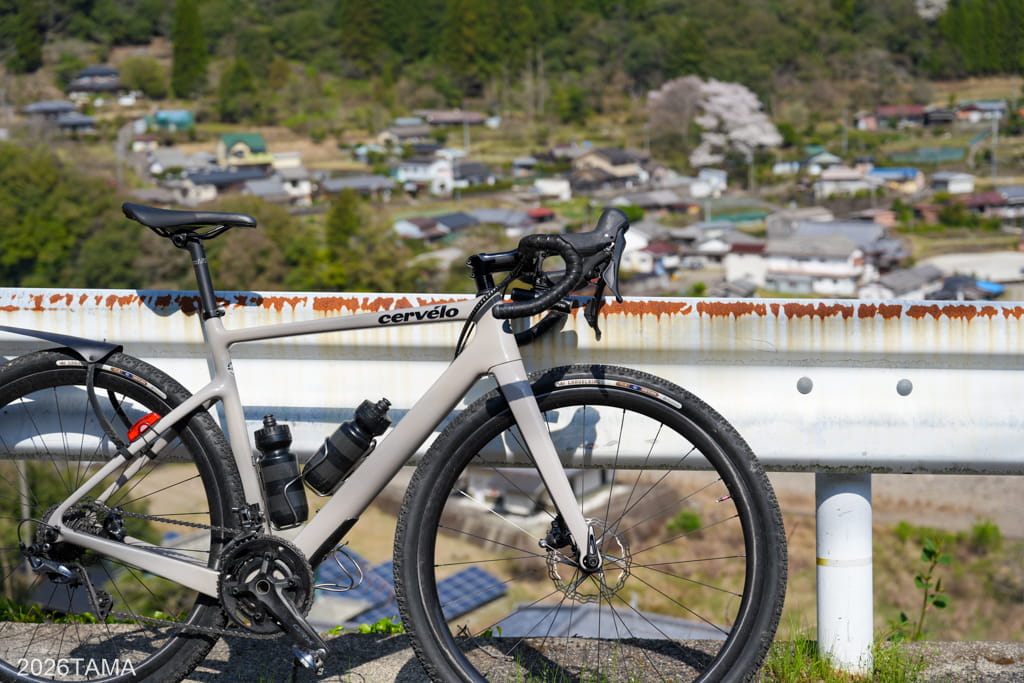 アスペロでグラベル走行をする際のタイヤ幅について、今までの40cから今回45cに変更しました。ただ劇的な変化を感じられるとそうではなく、少し大きめの石を踏んでも気持ち揺れにくくなったかなというくらい。何しろTLRではなくTPUチューブ運用をしているため、思い切ってガレ場に突っ込んでいく勇気がない。