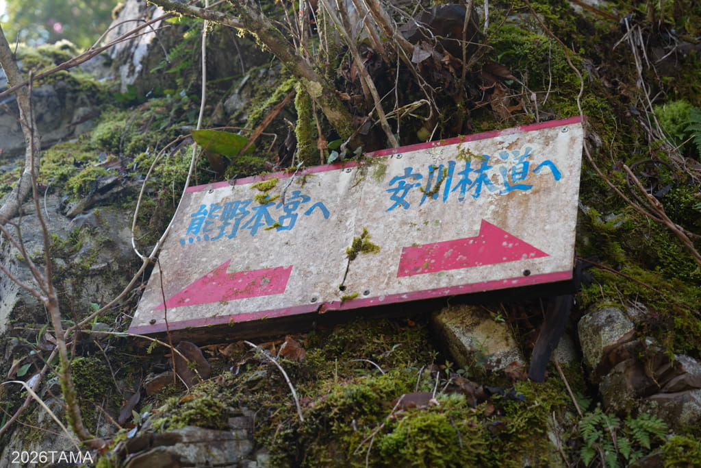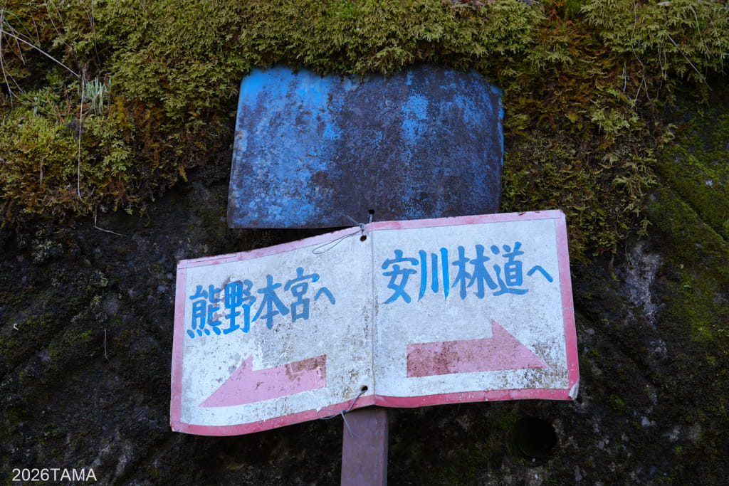 小広王子跡から熊瀬川王子跡を過ぎ、小広峠を越えたことで中辺路も一段落。出発地点である川湯温泉が標識に出るようになりました。このあたりで数人の古道歩きの人と出会いましたが、方角的に本宮大社方面へ向かうみたいです。