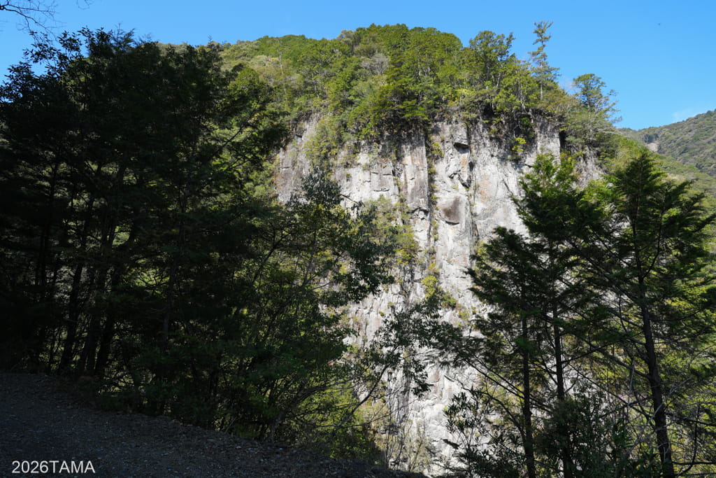そして、林道安川大塔川線において道を通すことがどれほど困難かを想像させる要素が切通しの先にありました。