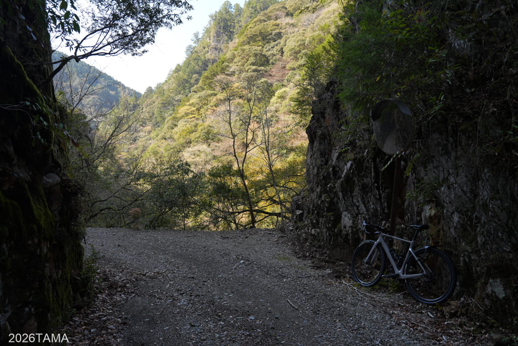グラベルの走りやすさは斜度云々よりも路面状況に左右されやすく、個人的には砂利オンリー、あったとしてもたまに小石程度がありがたい。そういう意味ではこのまま進んでみようと思える軽微な道でした。