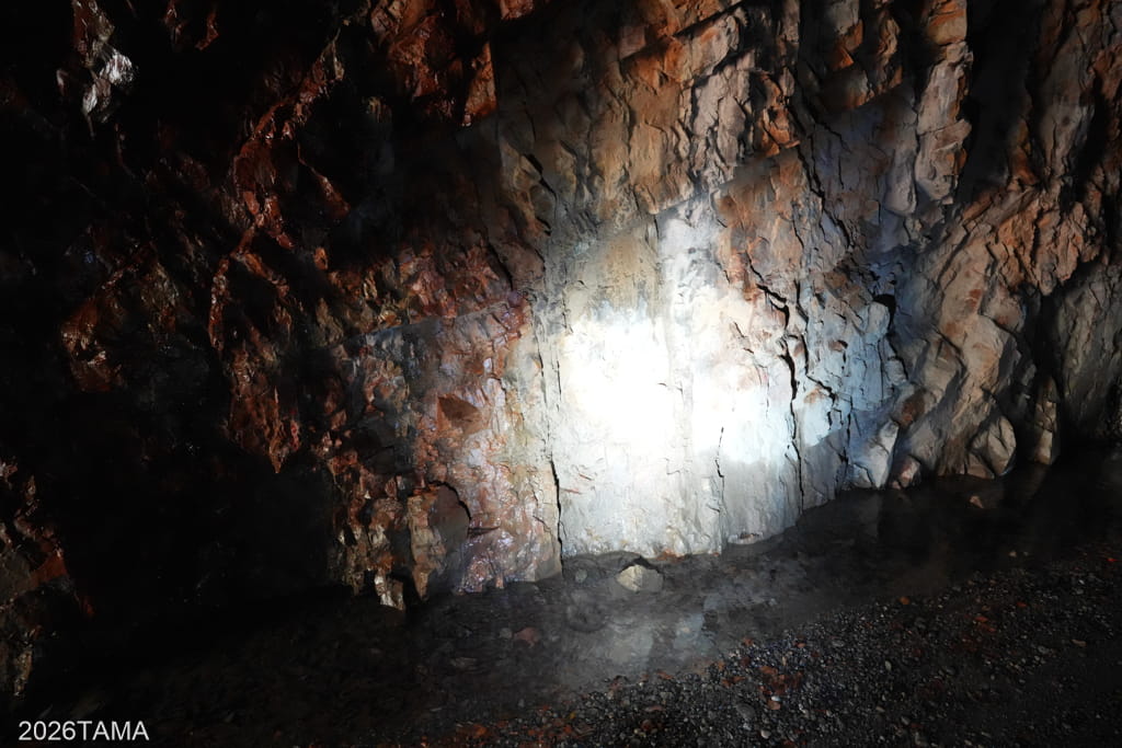 素掘りトンネルの美しさは岩肌の美しさ。内壁を補強せず山そのもの、地層そのものを全面に押し出している様は実に見事だ。