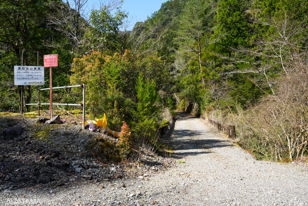 そこを超えると橋の手前に別の林道(通行止めだった)への分岐があって、橋を直進すると峠に向けて斜度が一気にきつくなります。分岐の橋のもう一つ先の橋を越えたところで未舗装路から舗装路へと切り替わりますが、途中で大規模な工事をやっていて一部未舗装路になっていました。やはり道としての歴史の長さは災害への弱さに直結しており、少しずつ新しくなっています。