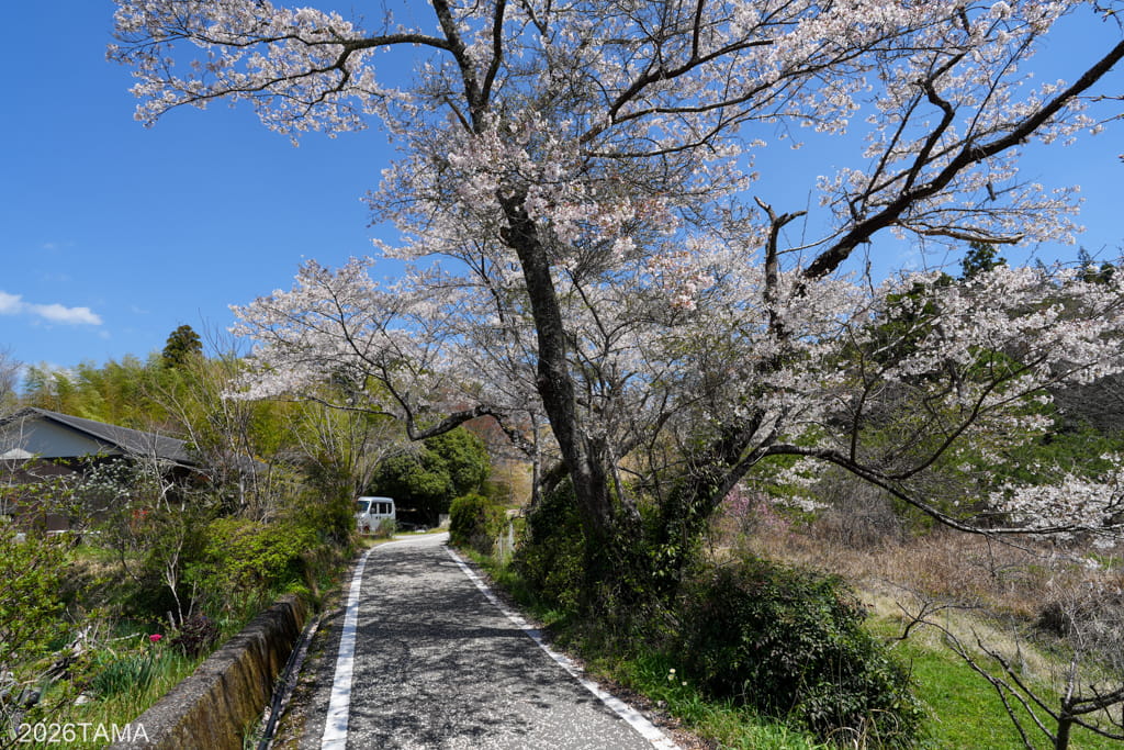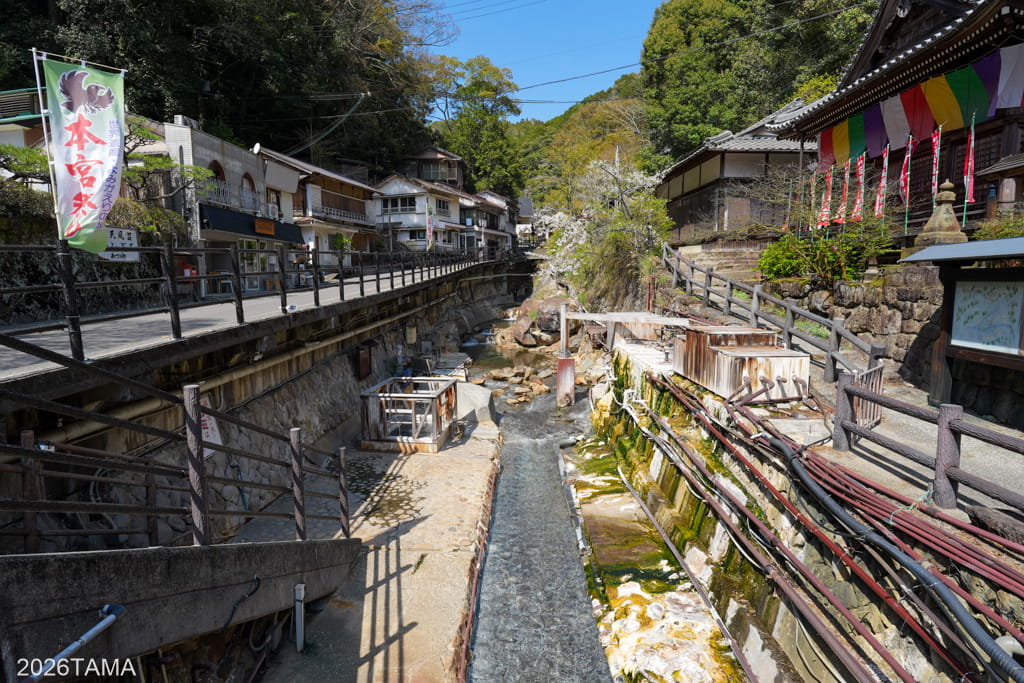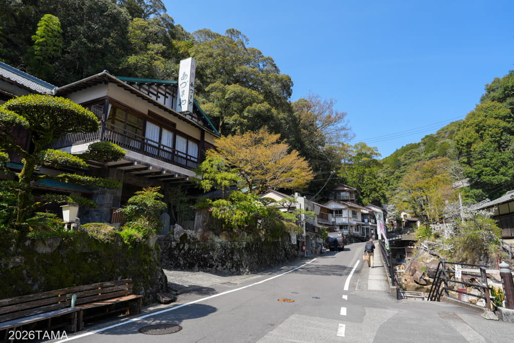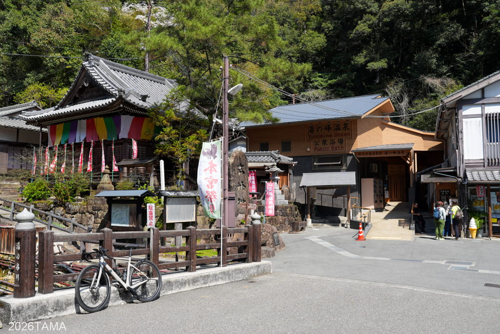 改めて周辺を散策してみたところ、春の時期に屋外へ出かけること自体が想像以上に楽しい。林道ライドだけではなく中辺路や温泉街の散策を復路に含めたことで、心地よい陽気のなかを歩く喜びに包まれている。なんて幸せなんだ…。