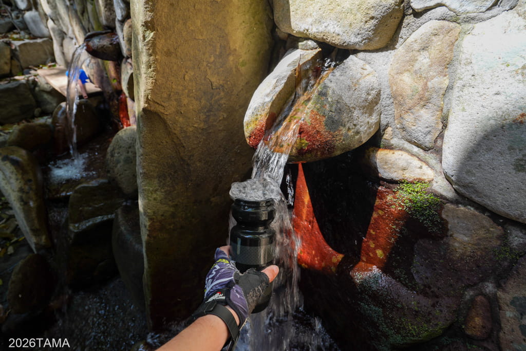 湧き水に代表されるように自分は水を直に味わえるところが好きなので、見つけた場合は立ち寄るようにしています。水があるということは山があるということ。昔の人もここで喉を潤したのだろう。