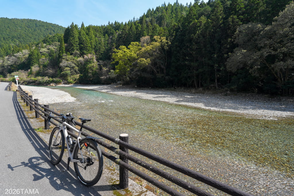 あとは…熊野古道はそのほとんどが山の中を通っているので、こんな風にロードバイクで走れる区間は限られています。そういう意味ではレアな体験です。