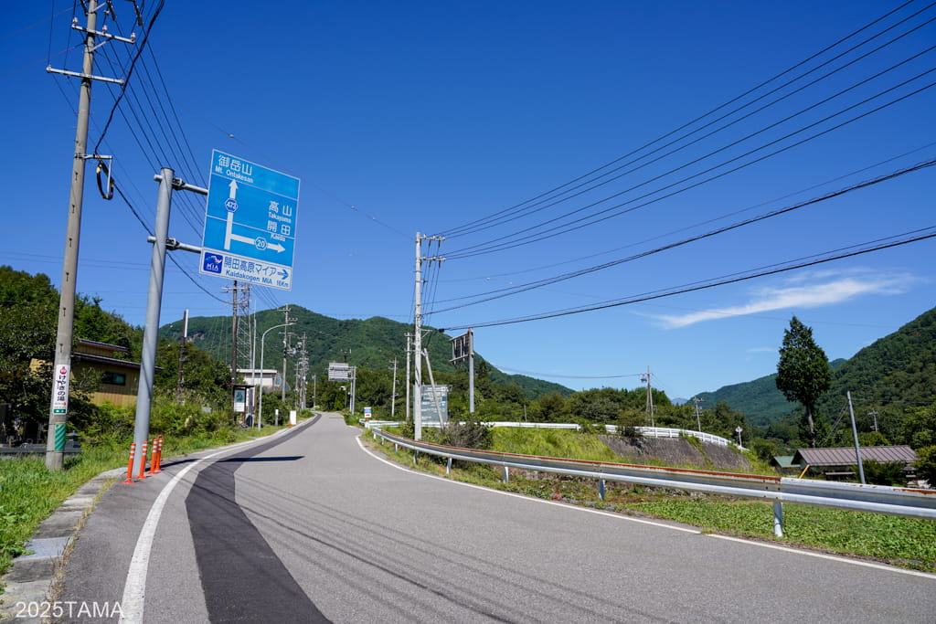 県道20号の途中からは御嶽山への登山口となる御岳ロープウェイへ行けるほか、少し視点を変えれば山間部を通りつつ岐阜県の下呂方面へも向かうことができます。しかし岐阜県や長野県を走るたびに思うけど、「国道が南北に通っているところ(=川沿い)以外はすべて山」という特徴が本当に理解しやすい。川沿いにしか平地がなく、川沿いに集落が形成されるのも当然といったところです。