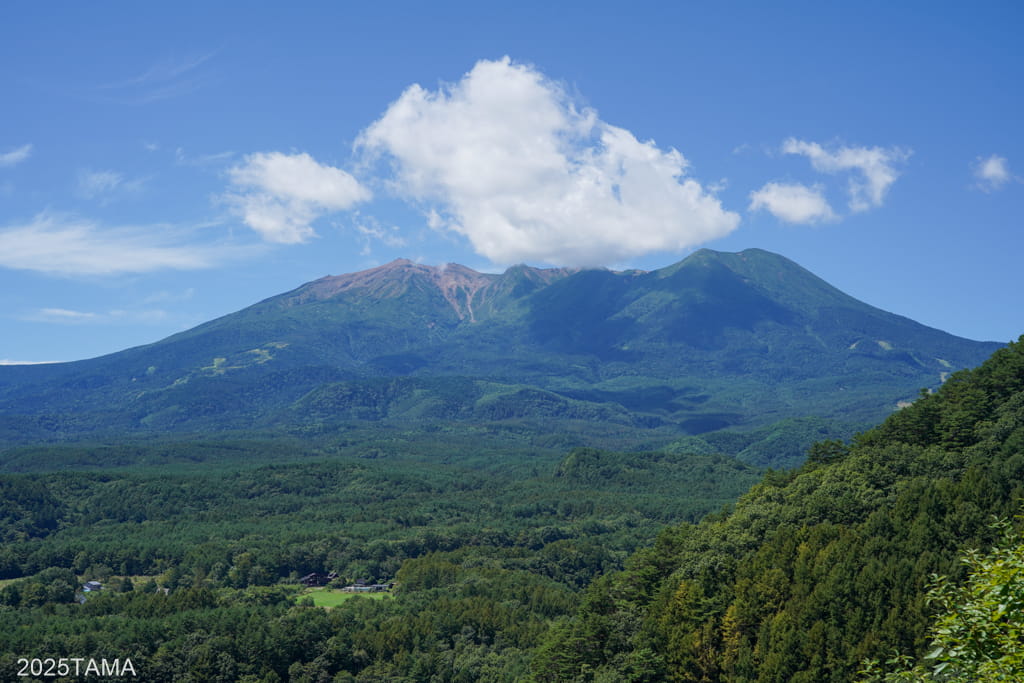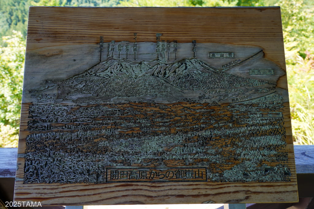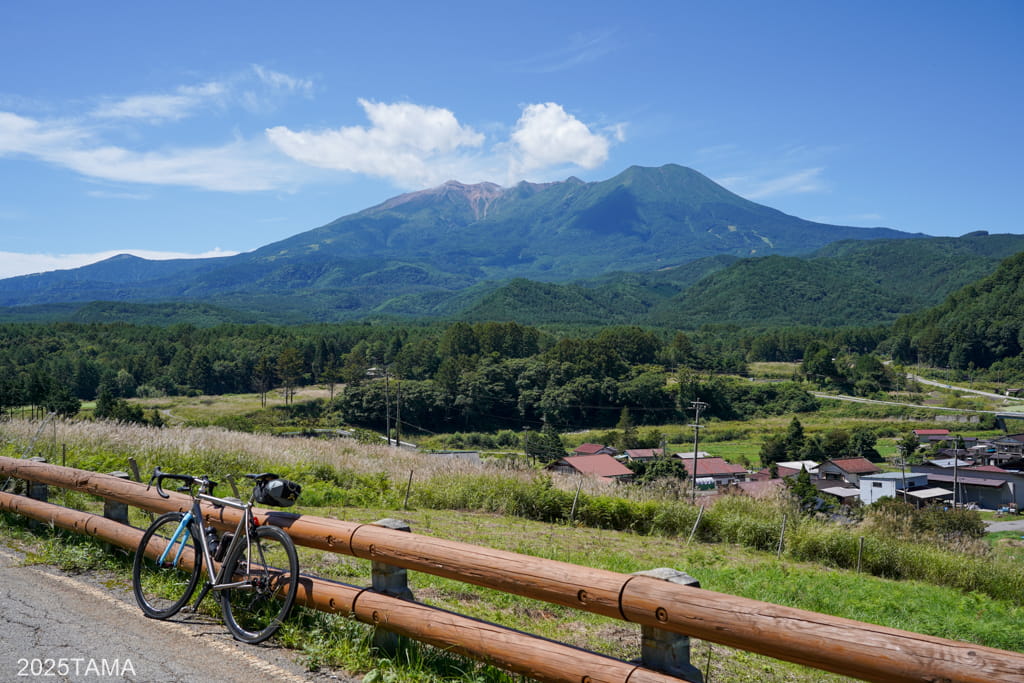 開田高原自体が結構な高地(1100~1500m)に位置している中、それよりも遥かに高い山がそびえている様子を間近で見れるのは心が踊る。またこの景色を拝むまでの道中も良くて、町並みの中から樹林帯へと道が移り、かと思ったら急に視界が開けて御嶽山が目に飛び込んでくる。短距離の中で景色がメリハリよく切り替わっていくので疲れが気にならない。
