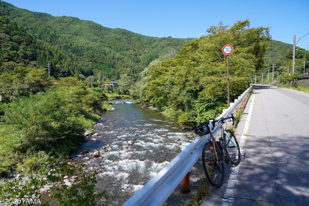 例外的に、中山道の中間点にあたる原野から宮ノ越宿を過ぎた巴渕までは国道とは別に県道267号が伸びていて、こっちを走るのがおすすめ。車通りが少ないため快適に走れます。これはたぶん徒歩で木曽路を移動する際も同様で、車通りの多さに辟易する場合は川の対岸に渡るなどの工夫が必要。自分はどっちかというと旧道とか地元の人しか通らないようなひっそりとした道のほうが好みなので、可能ならそっちを走るようにしています。