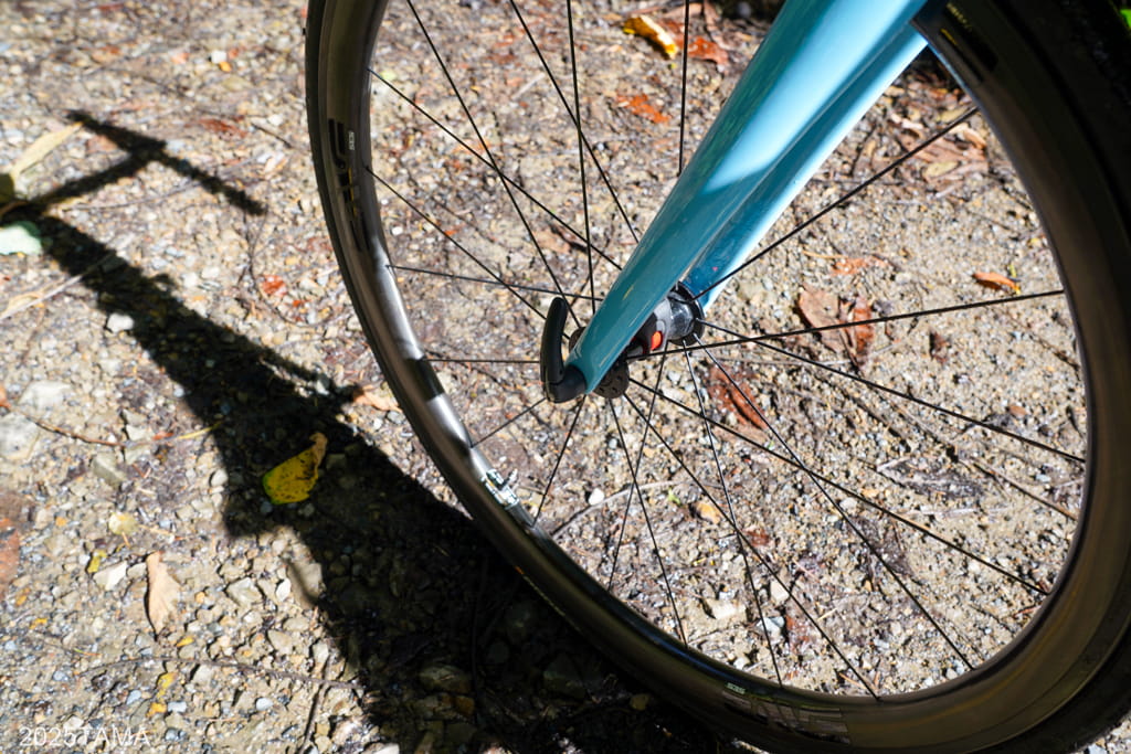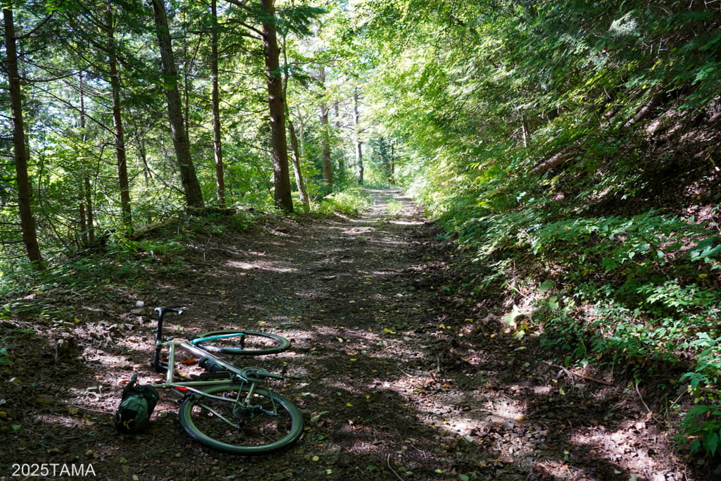車道の様子は軽度なグラベルという感じで、28cでも普通に走れました。