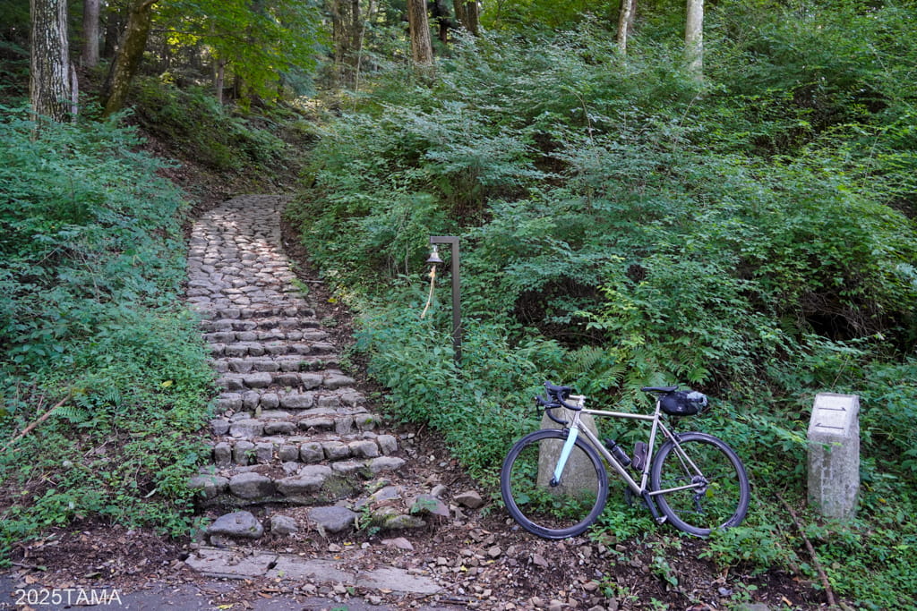この鳥居峠越えのコースは階段がある短距離ルートと車道(旧旧道)ルートに分かれているため、徒歩だけでなく自転車でも問題なく走ることができます。移動時間を考慮するなら国道を選ぶだろうけど、今の自分は時間的な余裕がかなりある。雰囲気重視なら国道よりもこっちを走るほうが良いだろう。