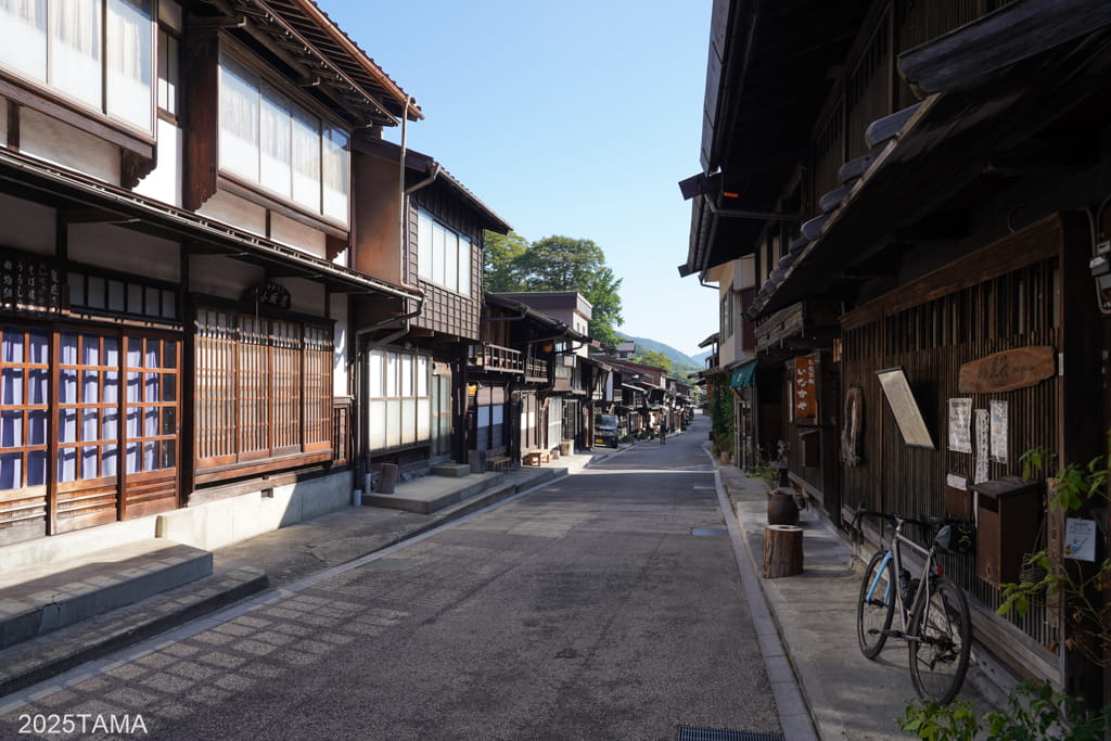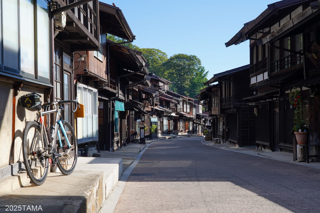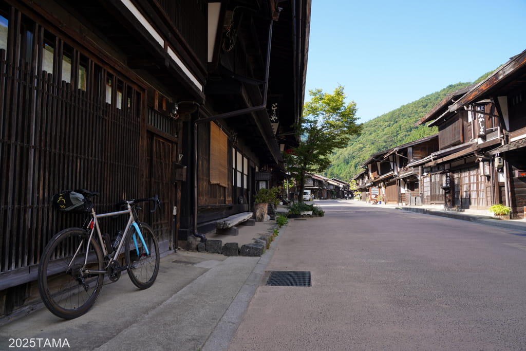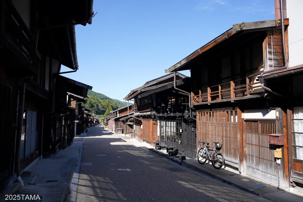 今回の行程で快晴を引き当てた時点で、奈良井宿へはロードバイクで訪問するとあらかじめ決めていました。江戸時代の人並みではないにしろ、自分の脚で木曽路を走破して鳥居峠を越え、適度な疲労感をもって宿場に到着したい。