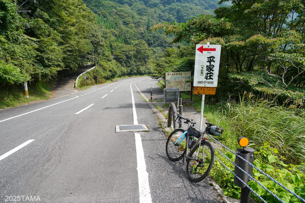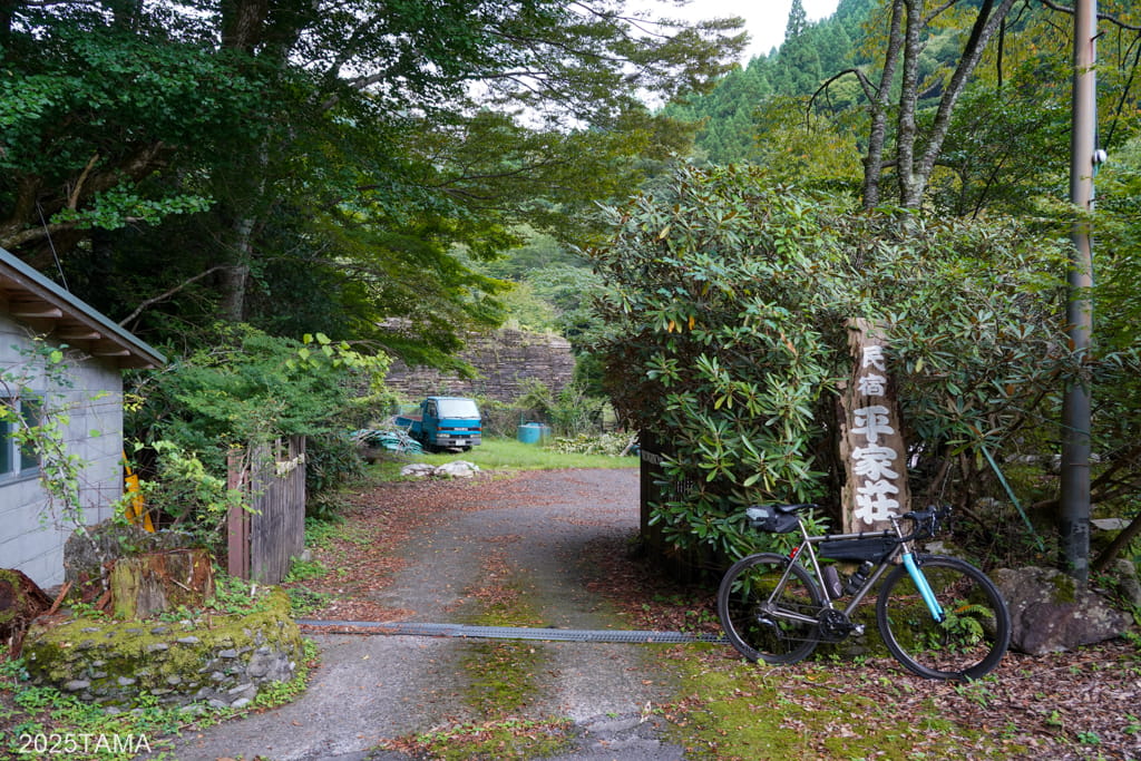 熊本市街と人吉市街の間には主に海沿いの道が通っていますが、そこから視点を東の方に移していくと山間部にも道が通っていることが分かります。後者については今まで走ったことがない空白地になっており、その空白地を走る上で選んだのがこの民宿平家荘です。その名が示す通り平家の落人伝説と深い関係がある宿でした。