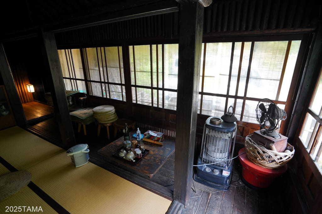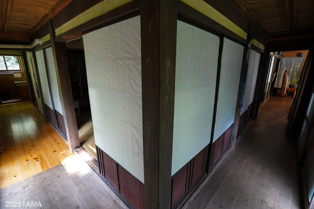 - 元々が築130年以上の旧家であり、襖戸や障子戸より以前の「舞良戸(まいらど)、みはら戸と呼ぶ人もいる」という板戸が使われている。舞良戸は室町時代の書院造に用いられた建具であり、現役の建物でこれを見られるのはとても貴重。