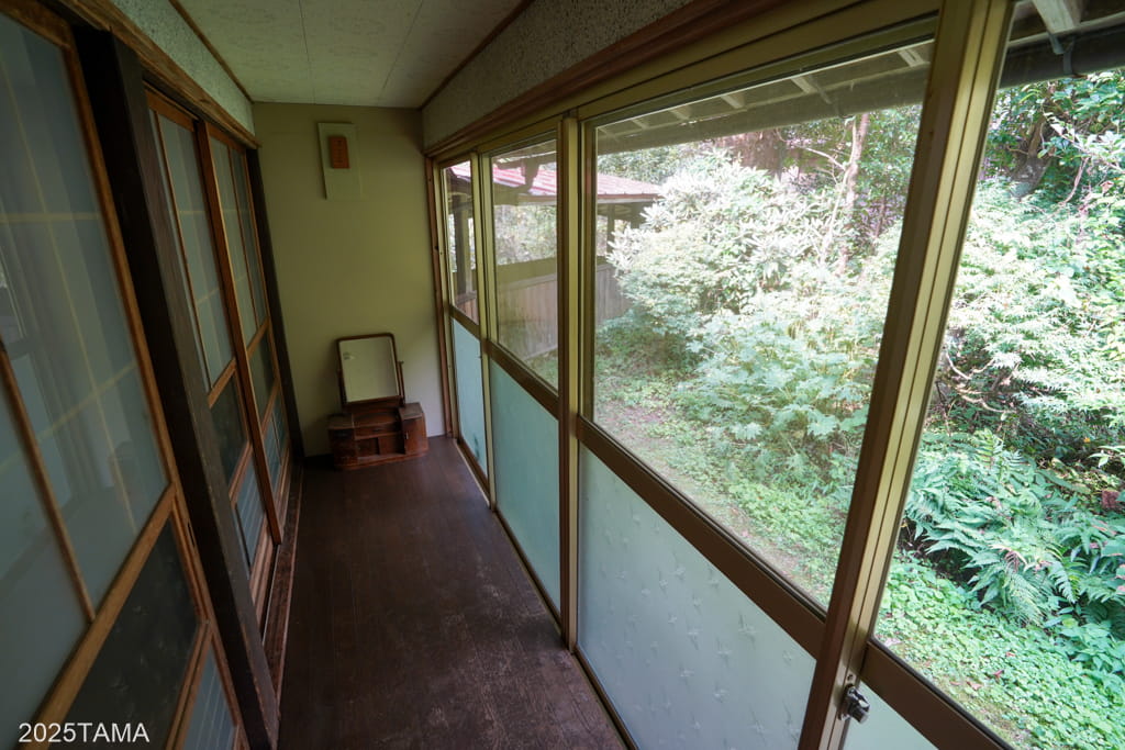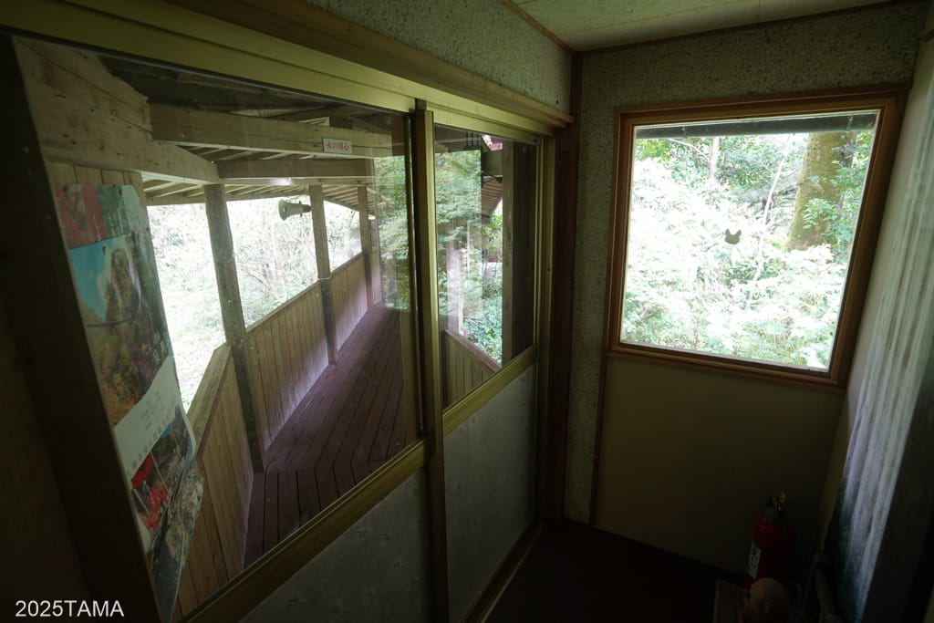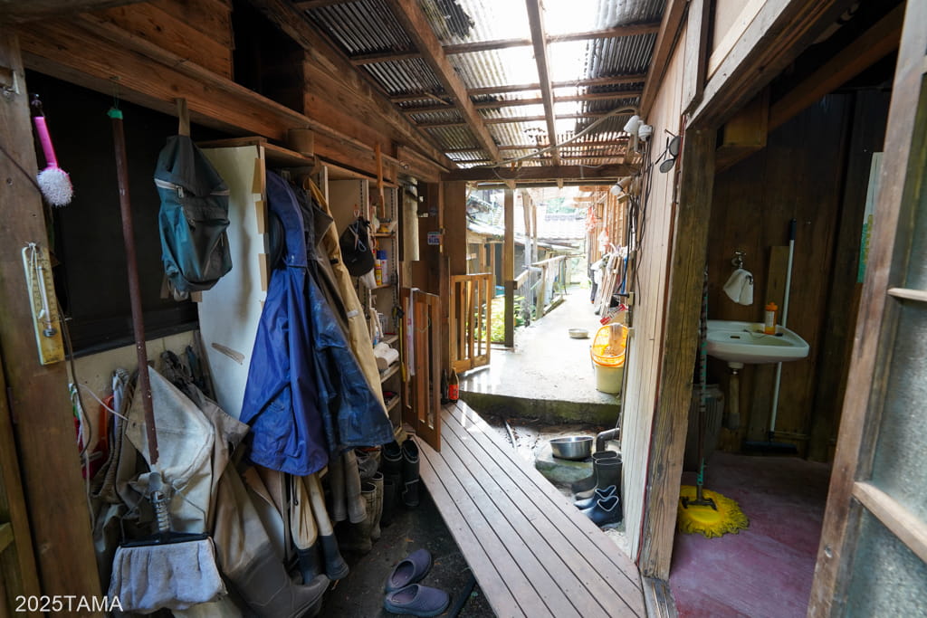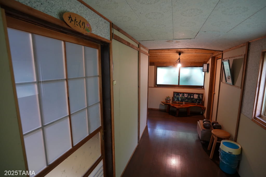 左の方へ進むと、女将さんたちの居住棟や母屋へ繋がる通路、物置などがあります。マルちゃんは基本的にここで昼寝をしていました。