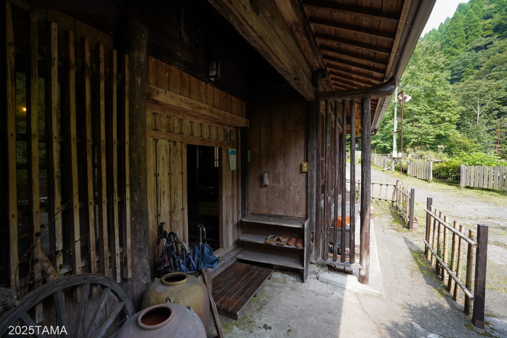 そのまま奥へ向かうと右側に宿の方の駐車場、囲炉裏棟があり、道なりに沿って左奥方向へ歩いていくと母屋やお風呂場があります。