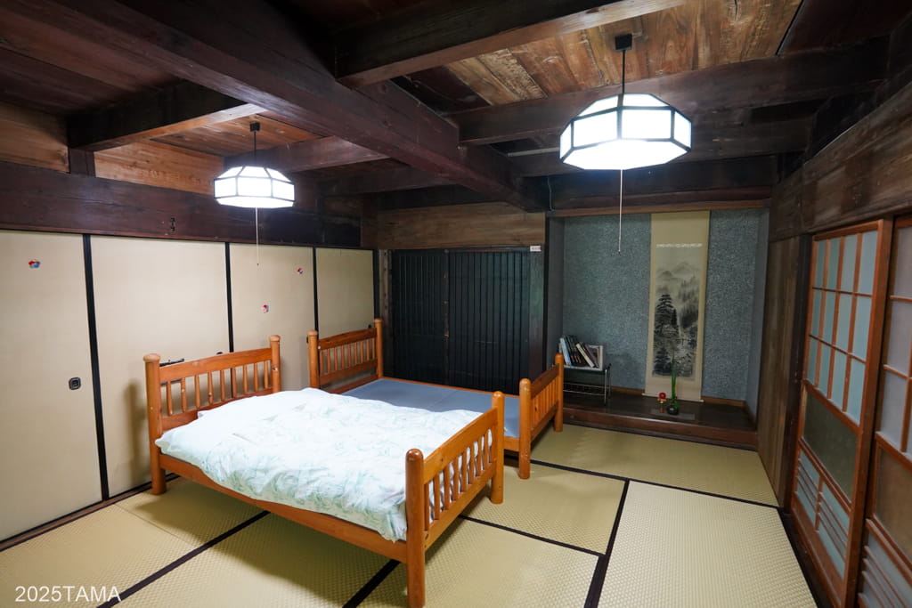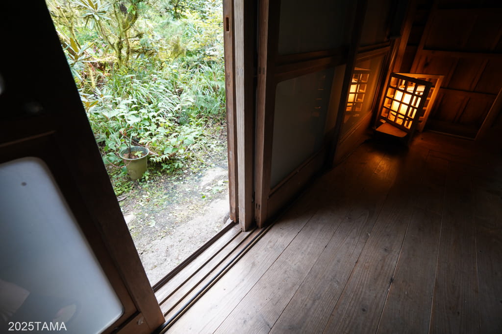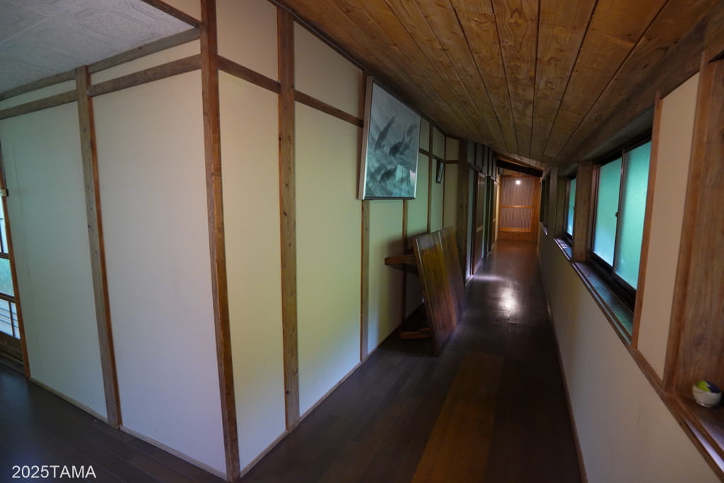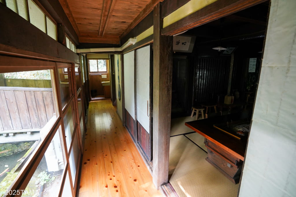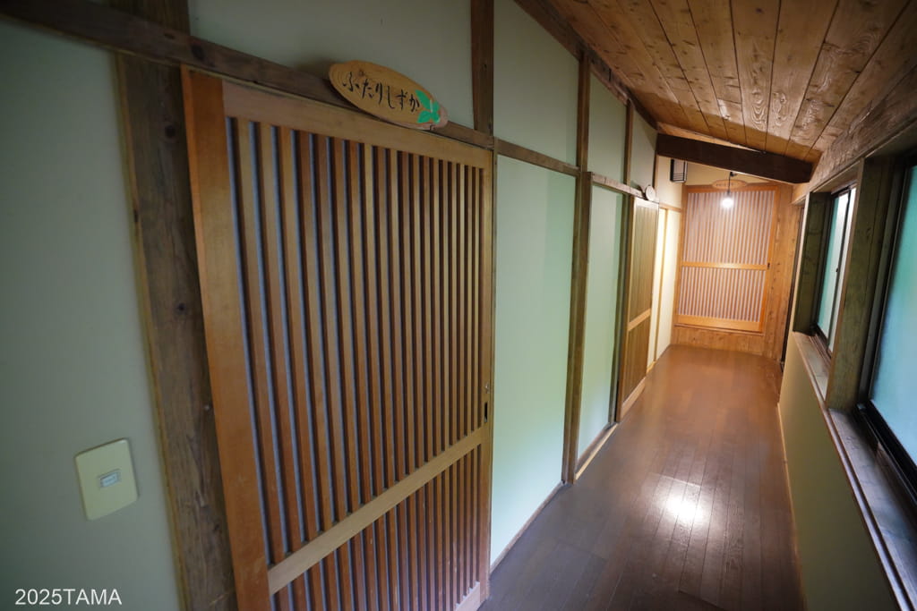 母屋には玄関や朝食会場(居間)があるほか、宿泊棟へは母屋から渡り廊下を歩いて向かうことになるため、滞在中で最も通行する棟となります。