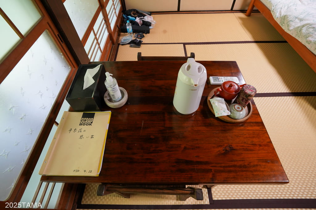 民宿平家荘を構成する全ての棟は平屋(母屋は一部2階がある様子)ですが、これは今まで泊まってきた宿とは明確に異なる点でもあります。平家荘は最初から旅館としてスタートしたわけではなく「民家」であり、一つの家屋に住む人数が少なかった等の理由で平屋になっているようでした。