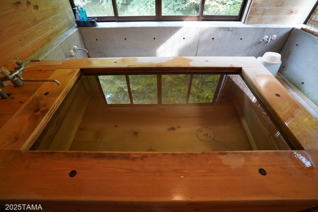 温泉ではないため湯の温度のコントロールは比較的自由がきき、夏場ということでご主人から「ぬるめにしておいたよ」と教えてもらいました。長湯ができるぬるい温度の檜風呂に浸かり、道中のライドと久しぶりの運動のダブルパンチで疲れた身体をじっくりと癒す。至福の時間だ…。