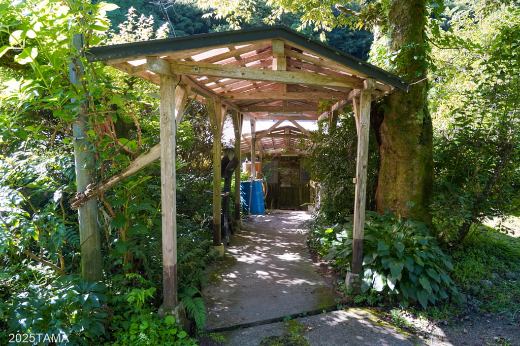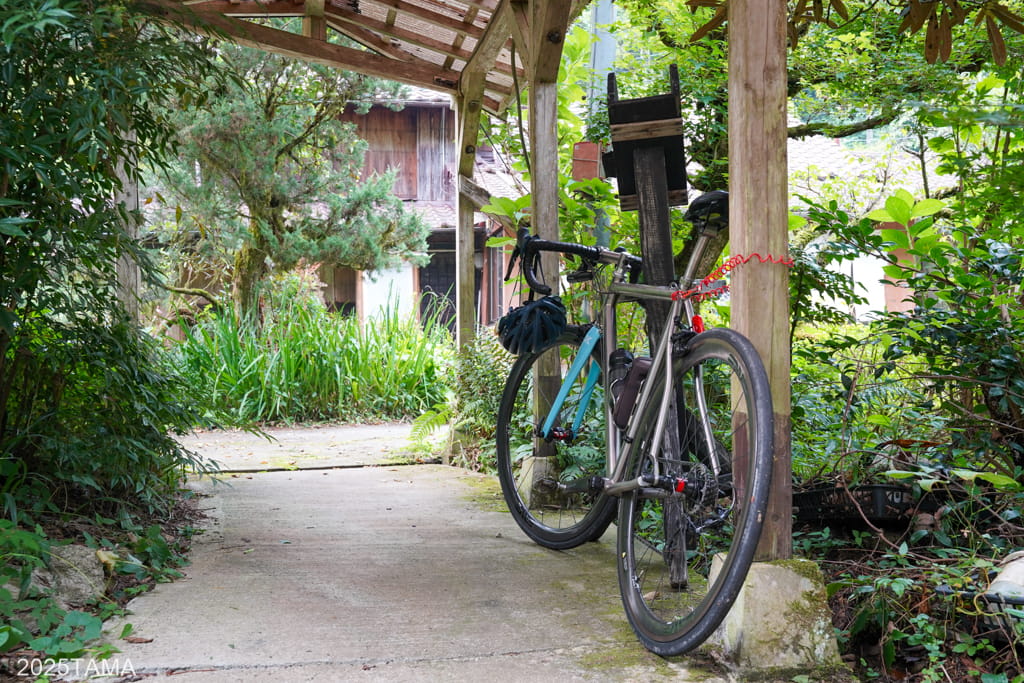 自転車は、風呂場へ向かう途中の屋根付きの通路に置かせてもらいました。