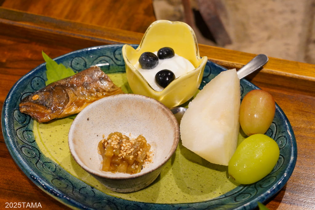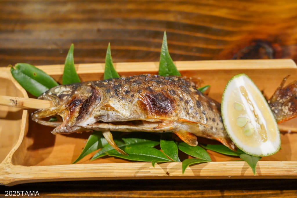 - 焼物:ヤマメの塩焼き、猪と地鶏の串焼き