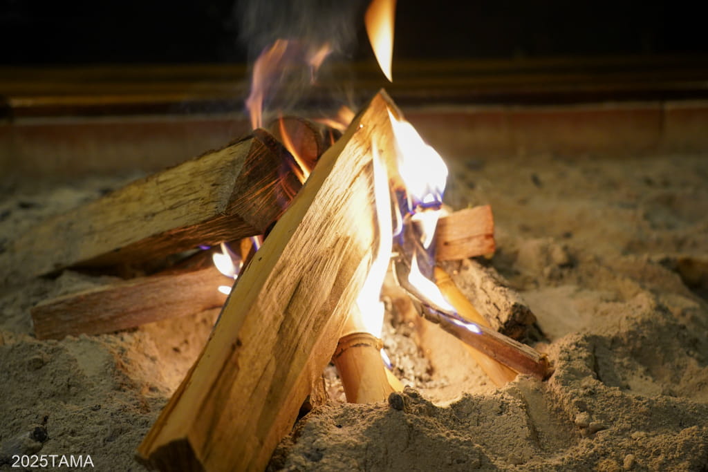 囲炉裏については、以前までは夏場でも囲炉裏に火を入れるくらい気温が低かったものの、ここ3~4年ほどは急に暑くなったので形だけ。それでも朝は炭入れのために火を入れていると聞きました。そんな中で、なんと女将さんがせっかくなので…と食後のタイミングで囲炉裏に火を入れてくれました!寒い時期でもないのにこれほど嬉しいことはない。ありがとうございます。