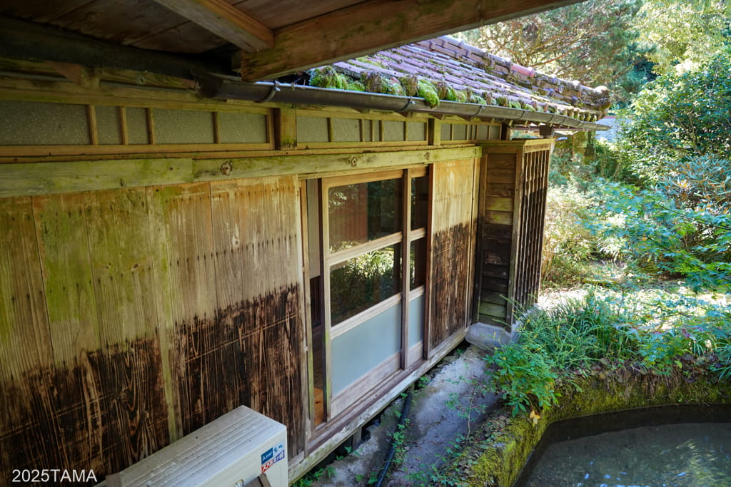 外観の様子。縁側との間にちょっとした垣根が設けられていたりして、建物全体のこじんまりとした感じが好きになりました。母屋とは完全に独立しているほか、中央に玄関があることからもかつて別の家だったことが分かりやすいです。