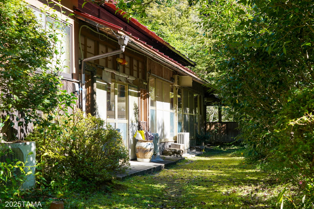 現在でこそ周辺には民宿平家荘の建物しかないものの、それらは時代の流れに伴って近くの家屋を併合していった経緯によるものです。敷地は相当に広く、また自分でも驚くくらいの山の中で余計な音は一切聞こえません。
