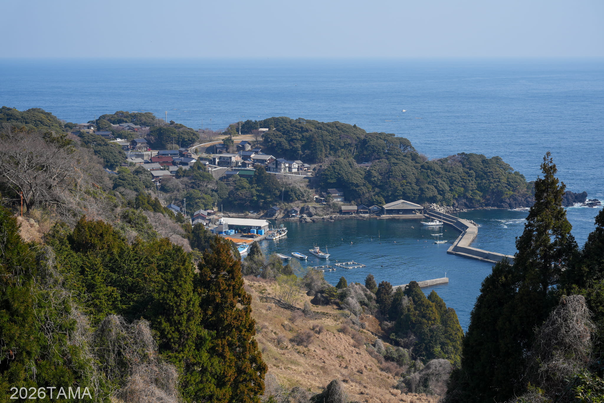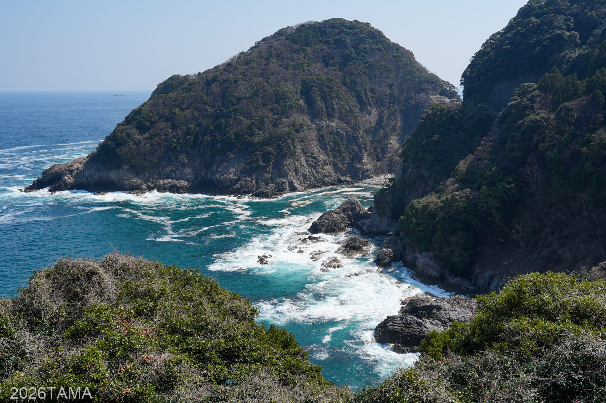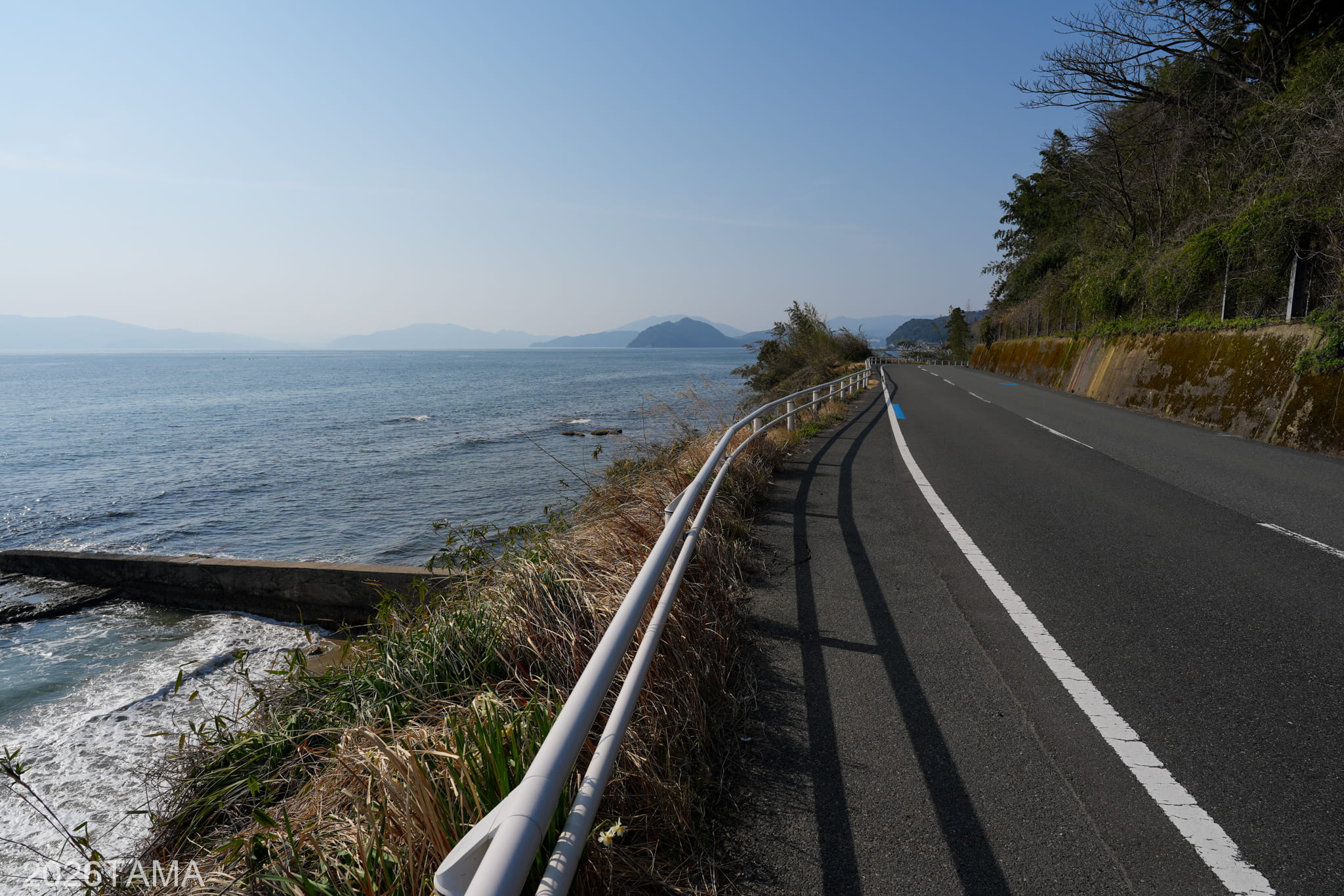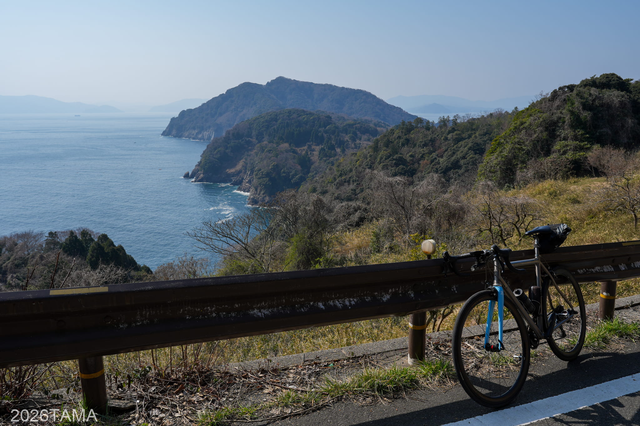 時期は3月ということで新緑にはまだ早く、海の濃い青に比べて丘や山などの陸地の緑色はまだ控えめ。