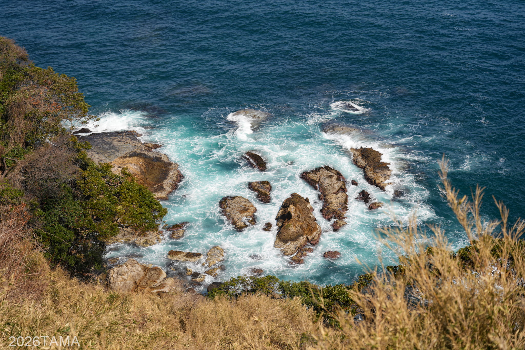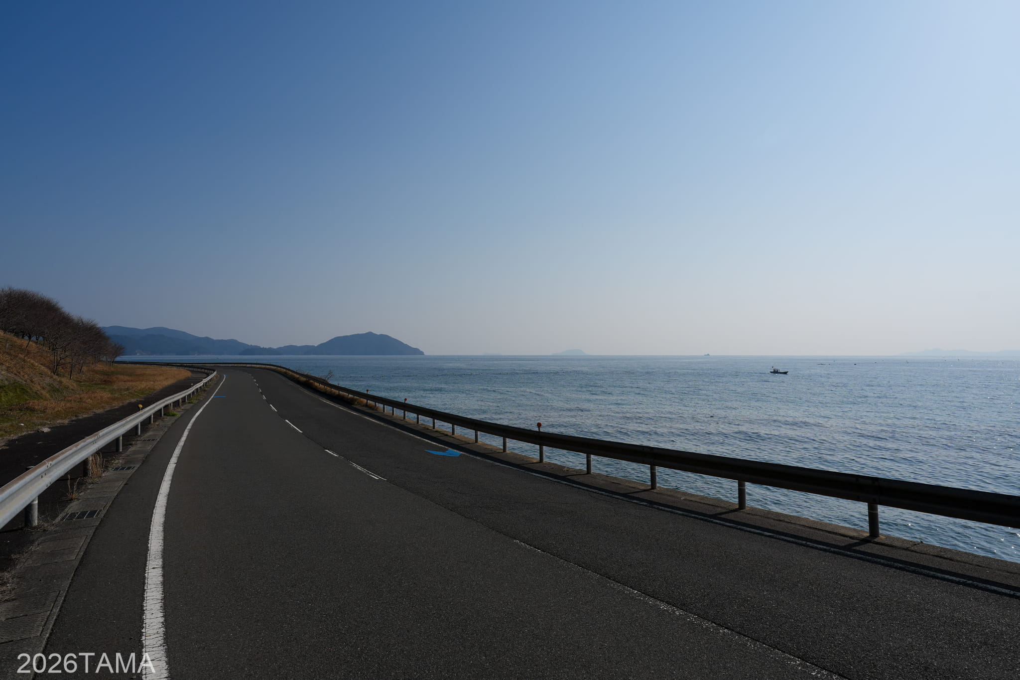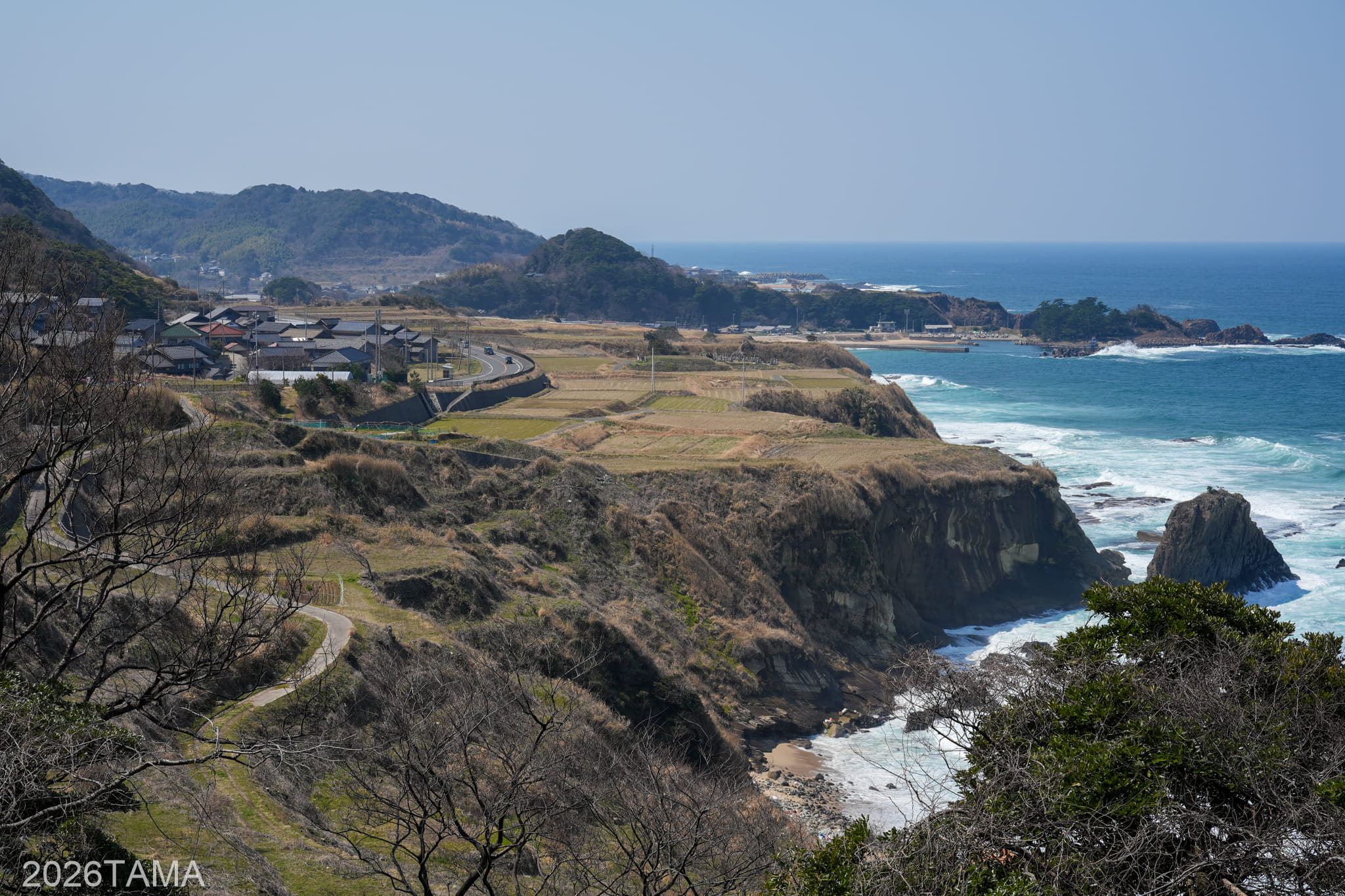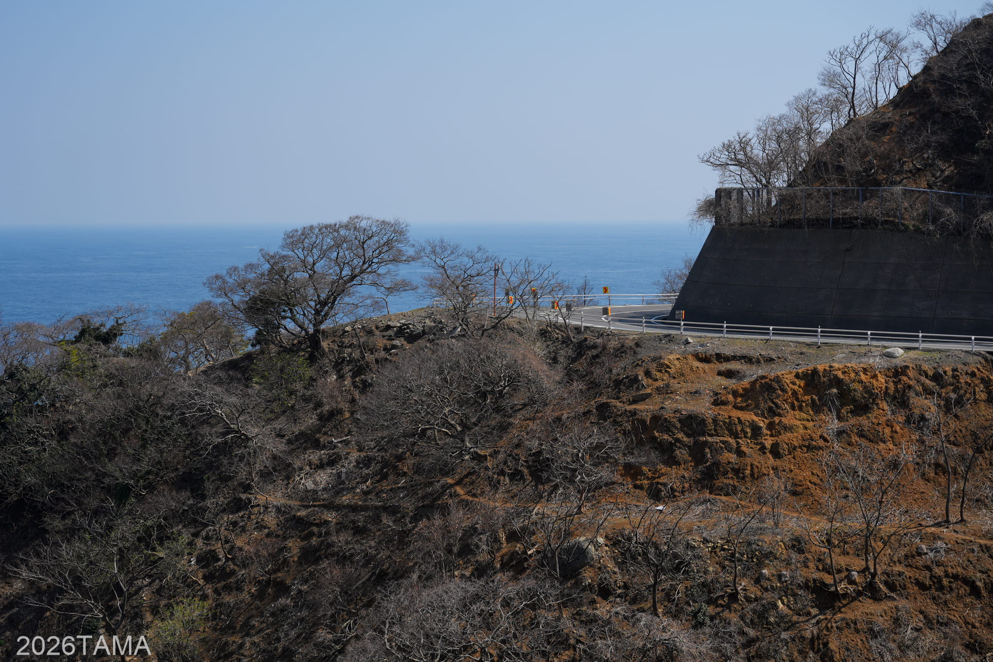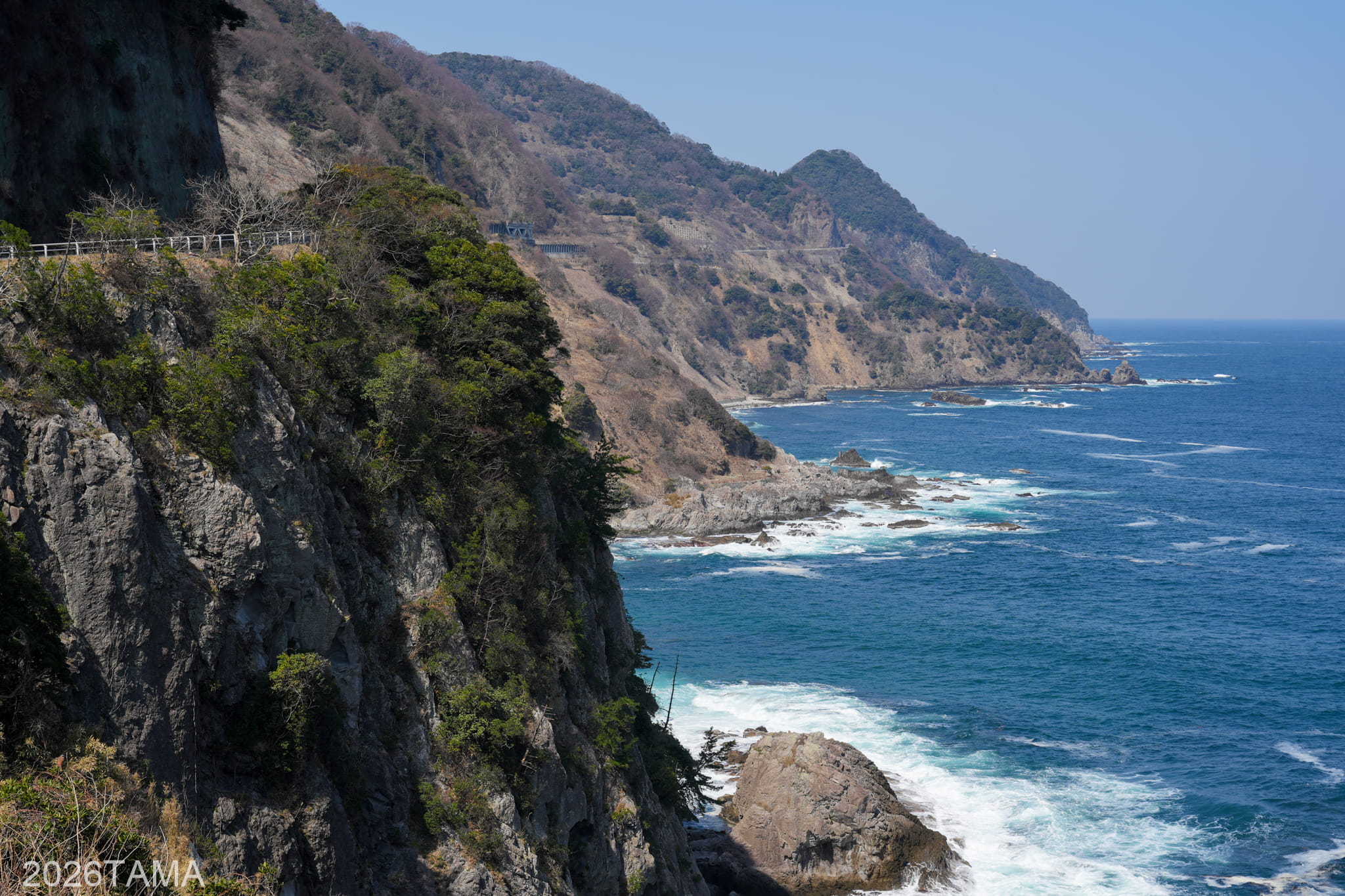 時期は3月ということで新緑にはまだ早く、海の濃い青に比べて丘や山などの陸地の緑色はまだ控えめ。