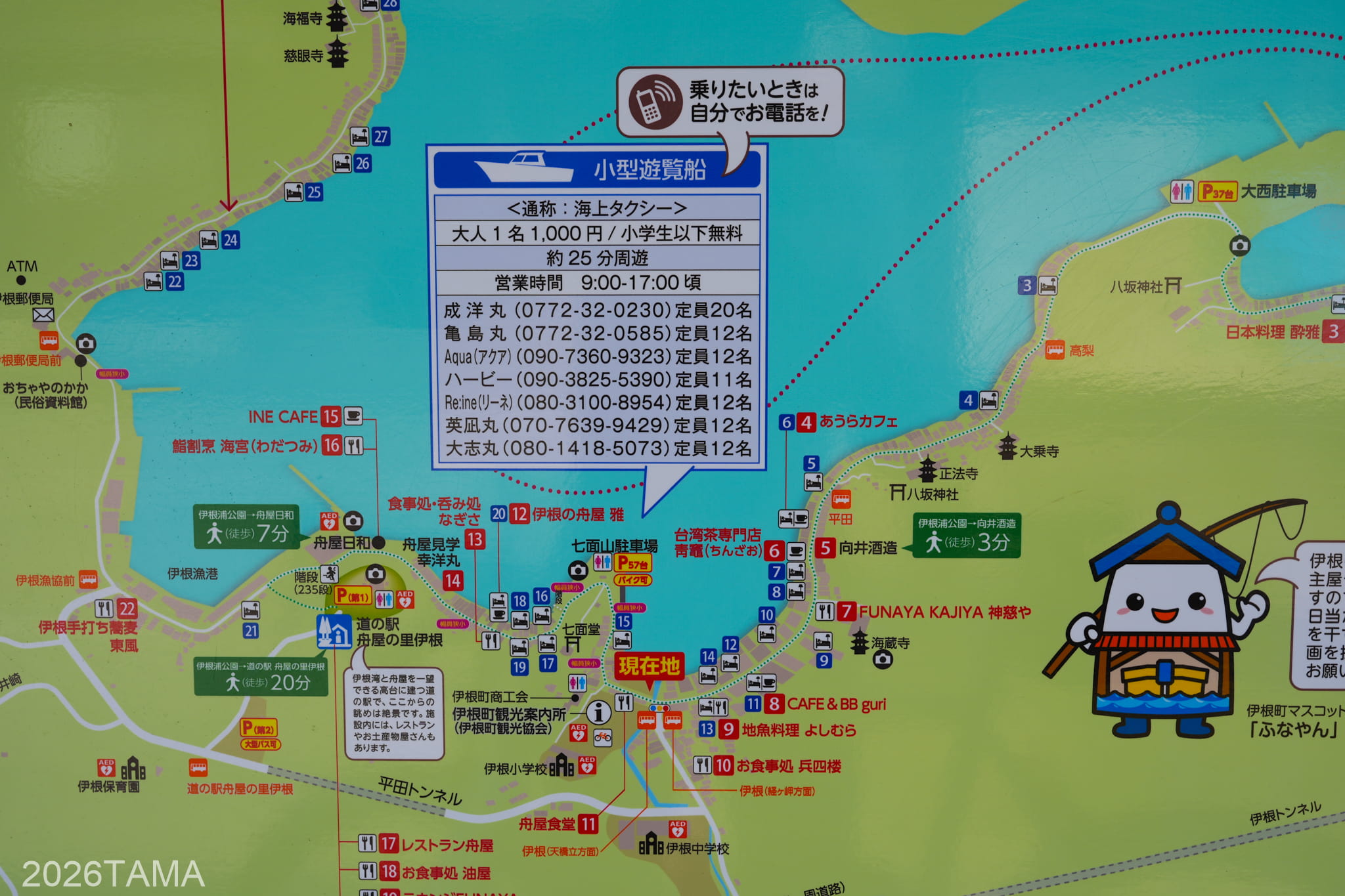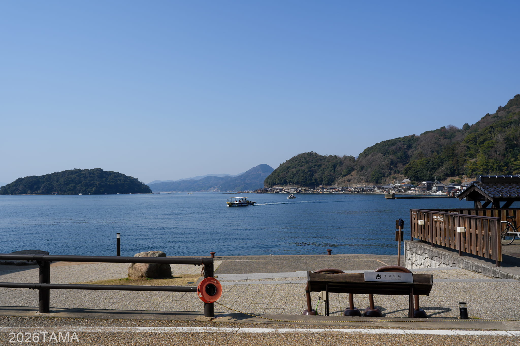 近くには舟屋を改装した宿泊施設やカフェ、遊覧船乗り場、飲食店などがあり、ここを起点にして散策をするといいと思います。伊根の舟屋の中心部にある伊根浦公園では、朝早いにも関わらず外国人観光客の姿が比較的多く見られました。