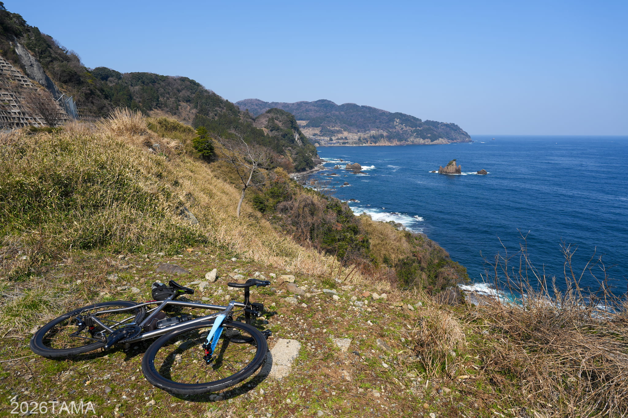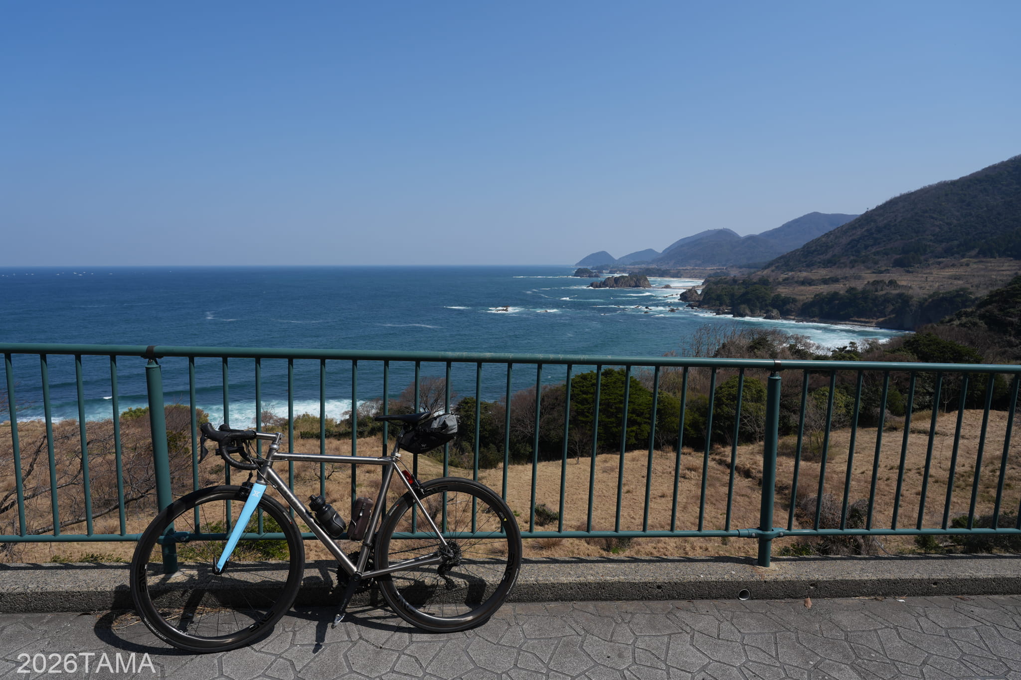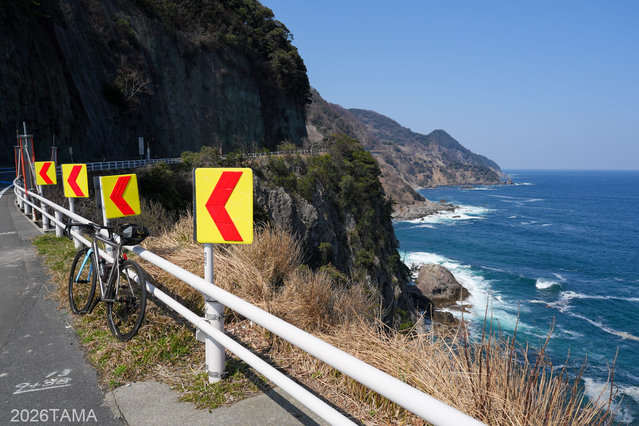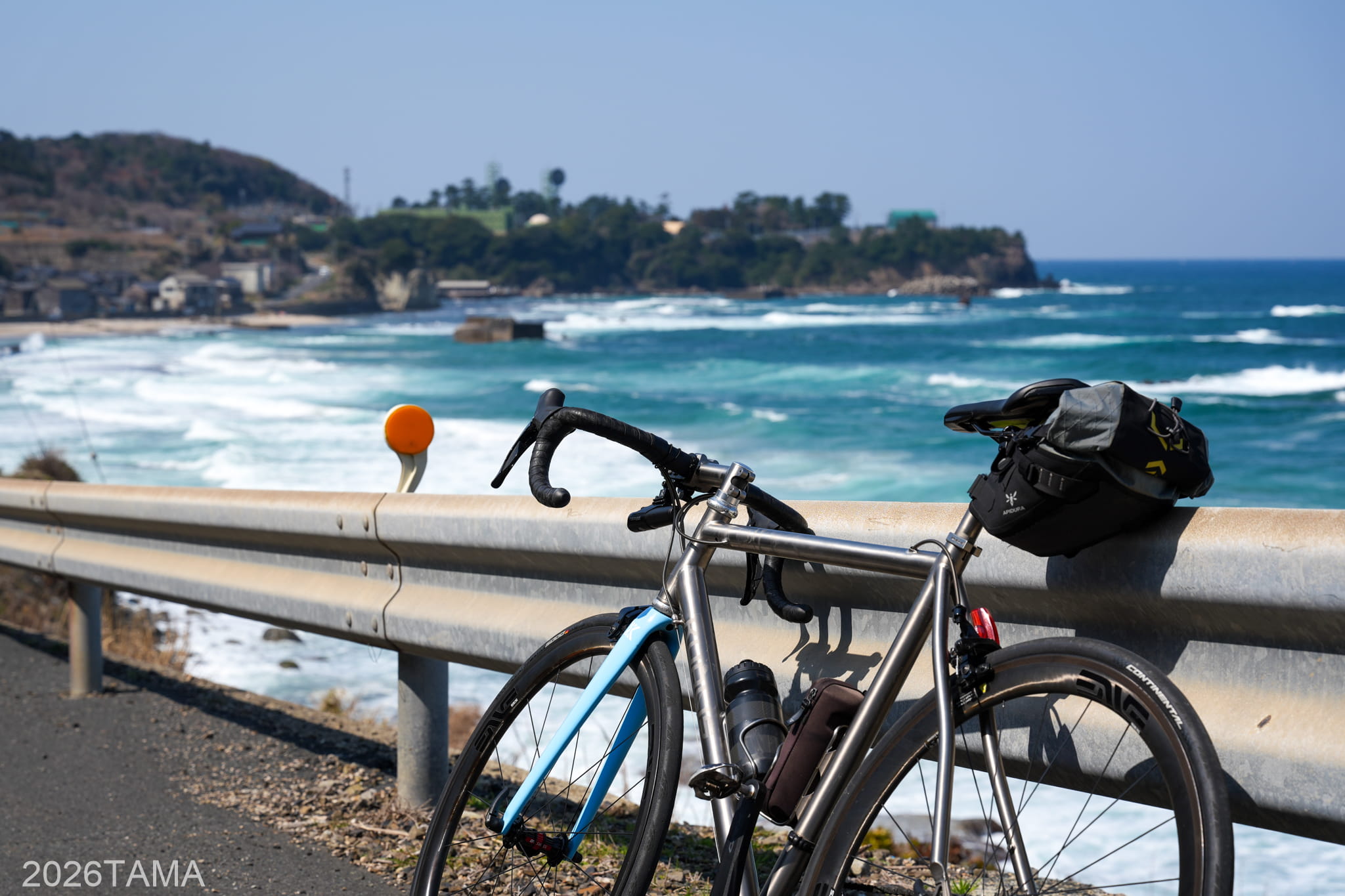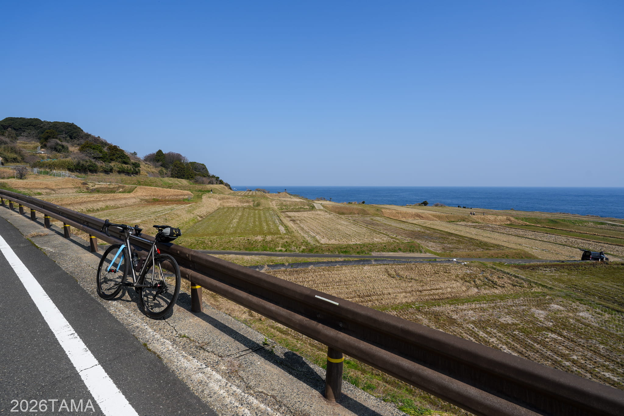透き通るような澄んだ色の空に青い海。寒くも暑くもない適度な気温。こういう道をロードバイクで走っているときにこそ自由を、そして幸せ感を感じられる。これは機材云々の話ではなく、いま自分が味わっている体験そのものの素晴らしさを強く感じました。こういう景色を自分は見に来たんだ。