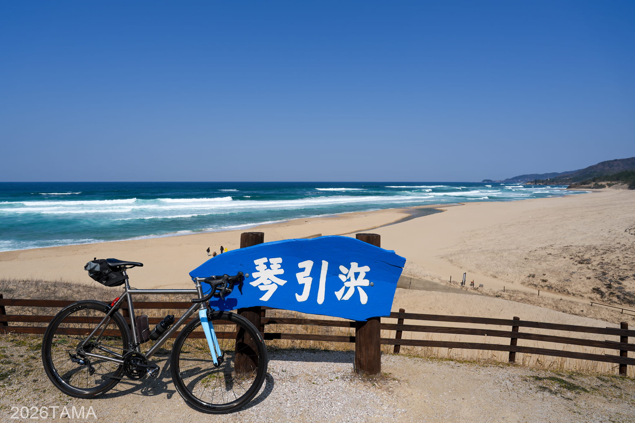 見渡す限りの砂浜と打ち寄せる波の様子が気持ちいい。もう少しすれば大勢の海水浴客で賑わうこの砂浜も、まだ水温が低い今の時期は数えるほどしかいません。でも砂の上に座り込んでうとうとするにはいい環境で、ライドのことを忘れてのんびりしていました。