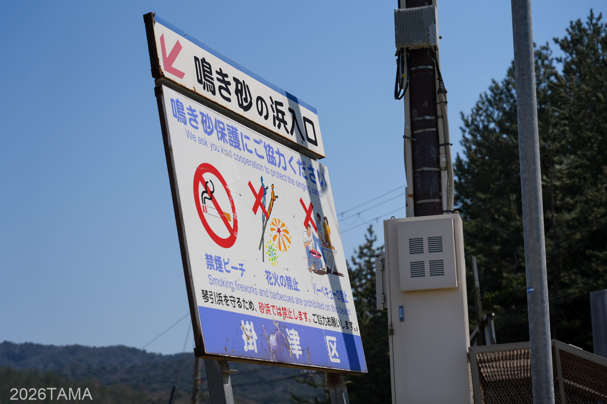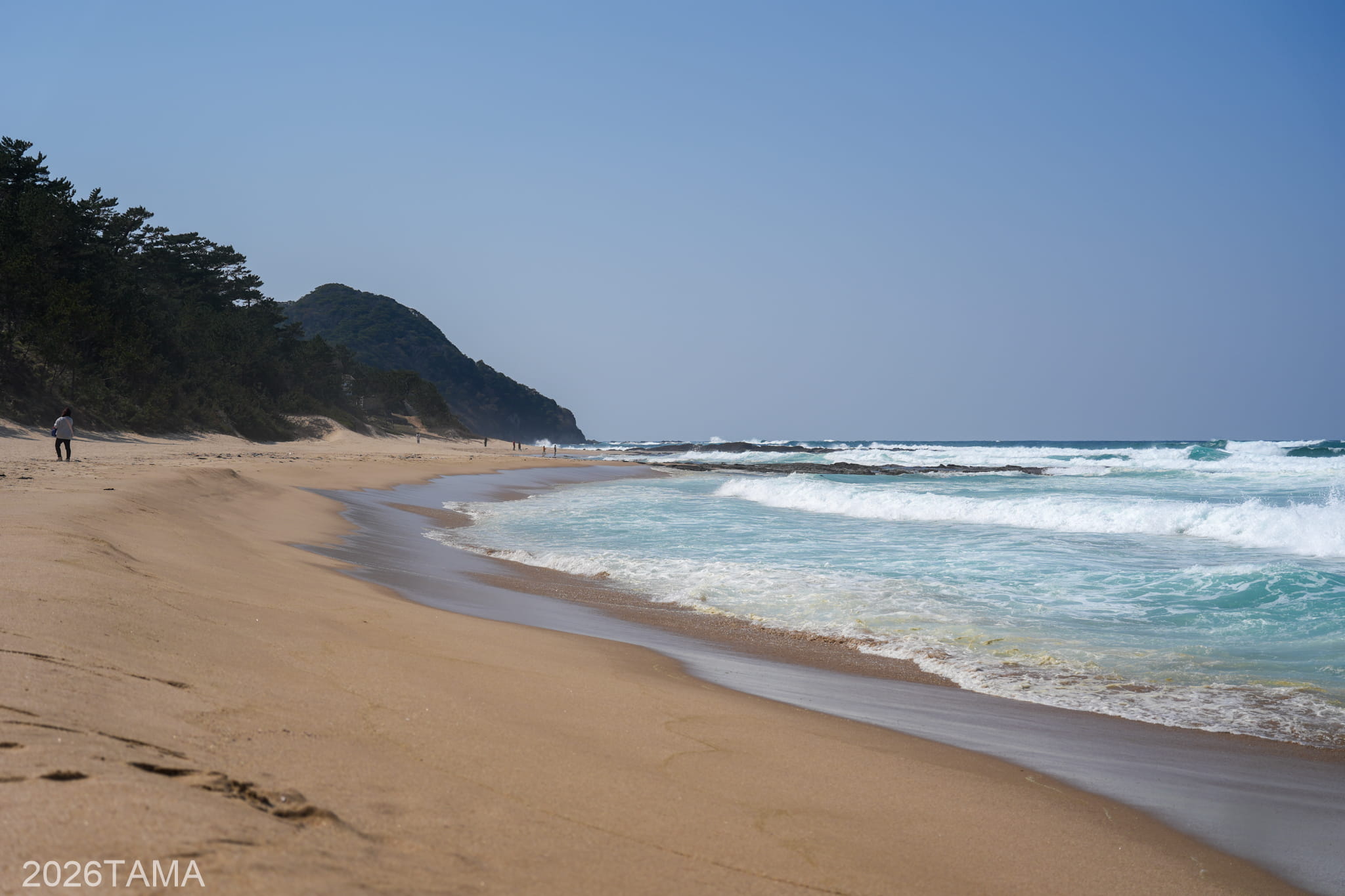 その中には約8000本の松が茂っており、海と砂浜、松の並木、そして山という大自然の要素を感じられるスポット。砂地の道はかなり走りやすく、途中にはトイレや休憩所があるので散策するにはちょうどいい感じ。地域の多くの方が朝から散歩されているのも納得がいきました。