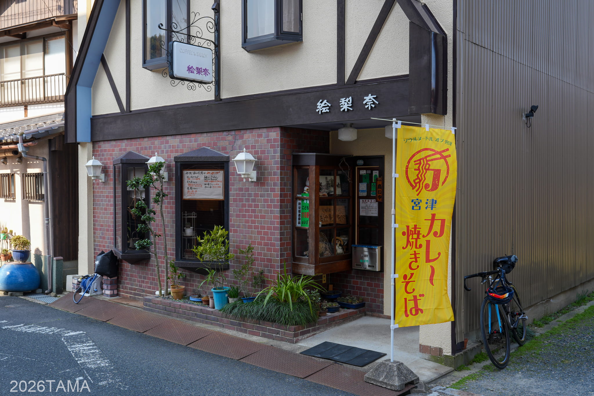 宮津カレー焼きそばの店は市街地にたくさんあるみたいですが、宮津に到着した時間帯が微妙だったため開いている店は多くありませんでした。今回は市街地の西側の「絵梨奈」という、店名というよりは人名みたいなお店を選択。