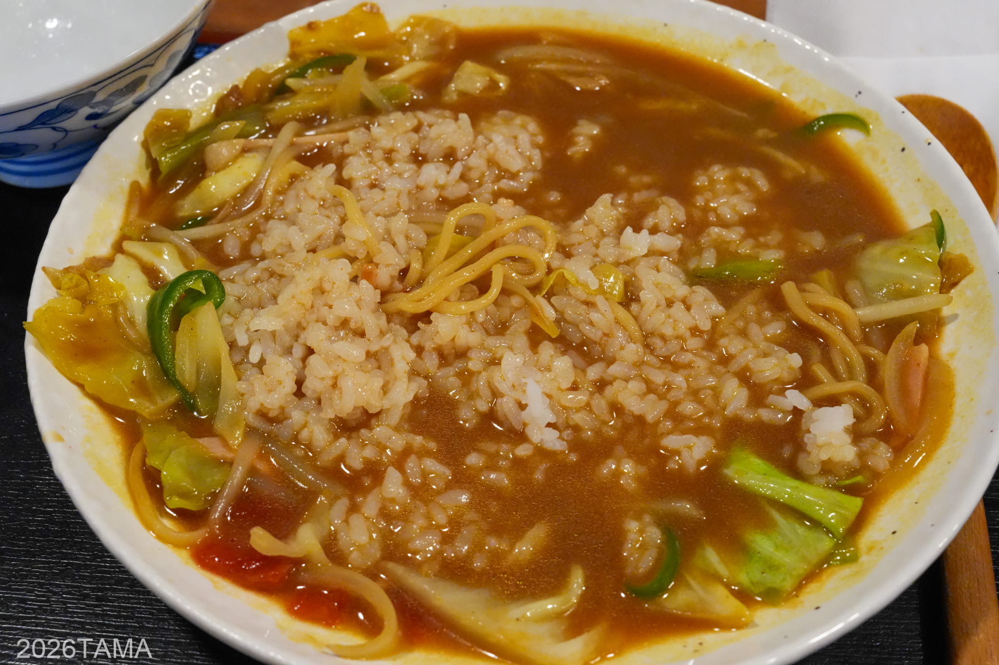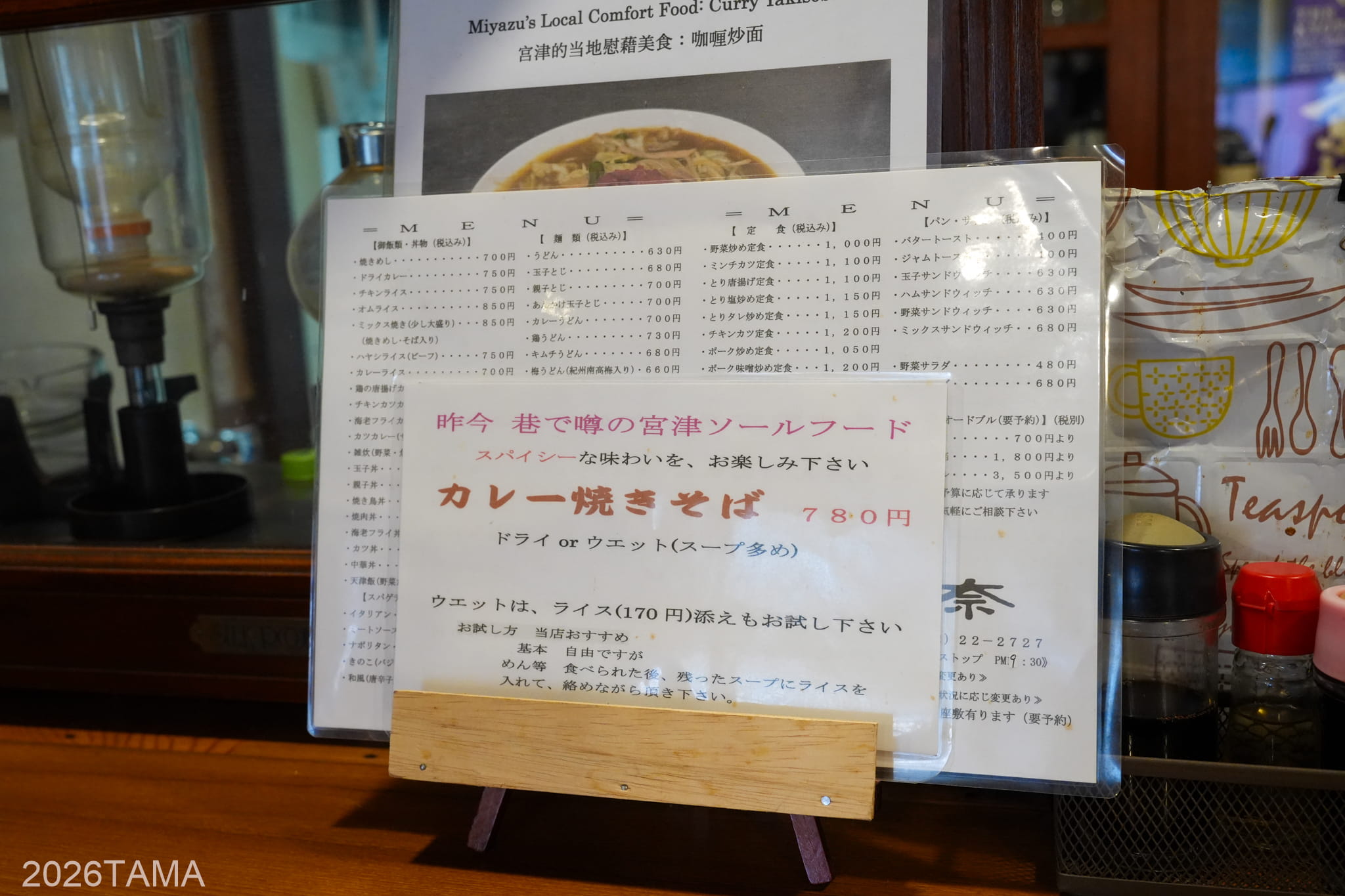 宮津のカレー焼きそばは汁気が少ない「ドライ」と汁気多めの「ウェット」の2種類から選択でき、ウェットの場合は食べ進めている途中にライス(別売り170円)を投入するのが美味しい食べ方のようです。どちらを選ぶかは完全に個人の好みだけど、今回はスパイス感が若干マイルドというウェットにしました。