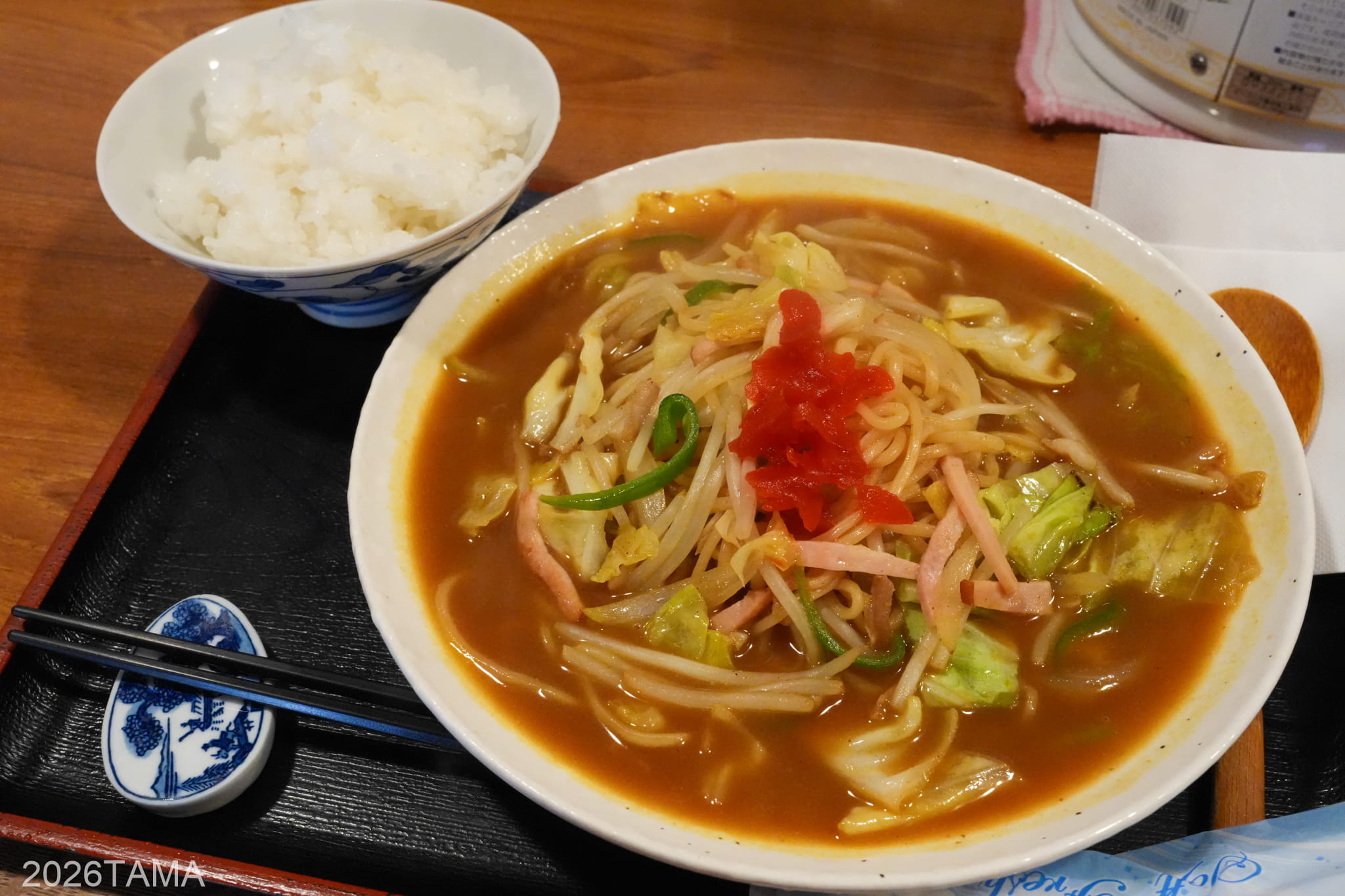 この絵梨奈はメニューの数がとてつもなく多く、ご飯物、麺類、定食だけでも各10個以上あります。定食については野菜炒め、ミンチカツ、とり唐揚げ、とり塩炒め、とりタレ炒め、チキンカツ、ポーク炒め、ポーク味噌炒め…等々。さらに夜になると飲み屋へチェンジするらしく、飲み用のメニューも豊富に取り揃えていました。こんな店が近所あったらいいな。
